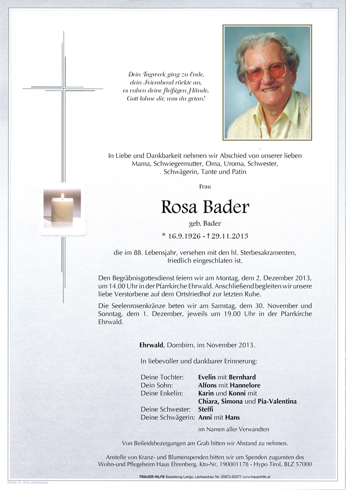Aufrichtige Anteilnahme am Heimgang Eurer lieben Mutter entbieten Fam. Paulweber und Fam. Kraxner!