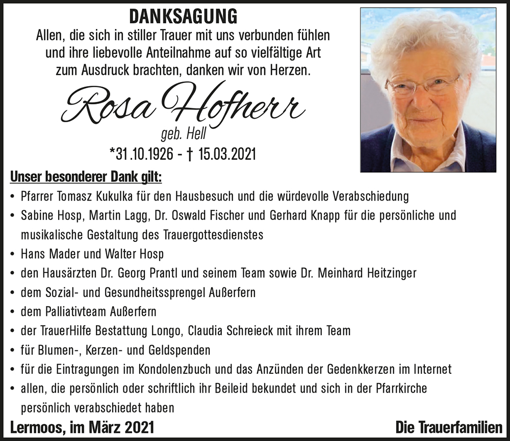 Kondolenzbuch für Rosa Hofherr