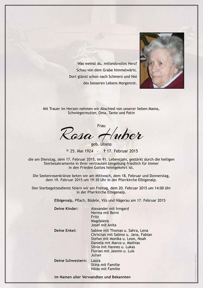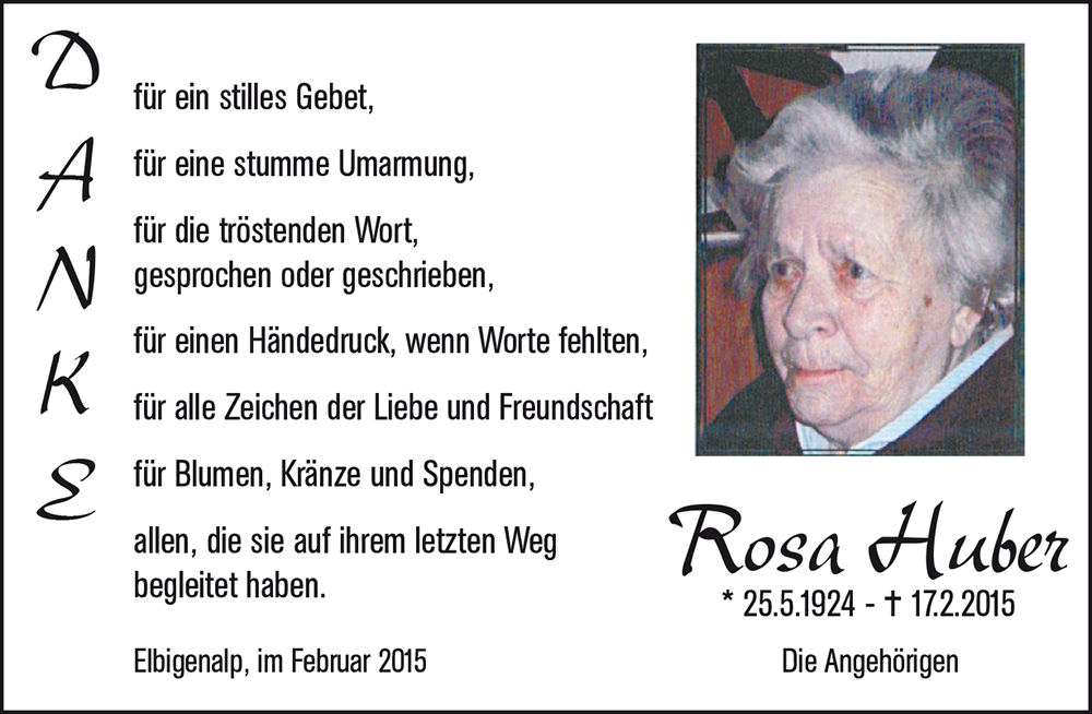 Kondolenzbuch für Rosa Huber