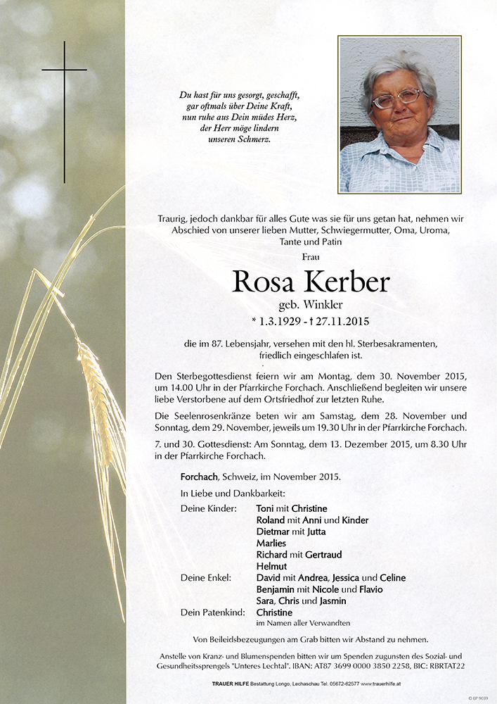 Kondolenzbuch für Rosa Kerber