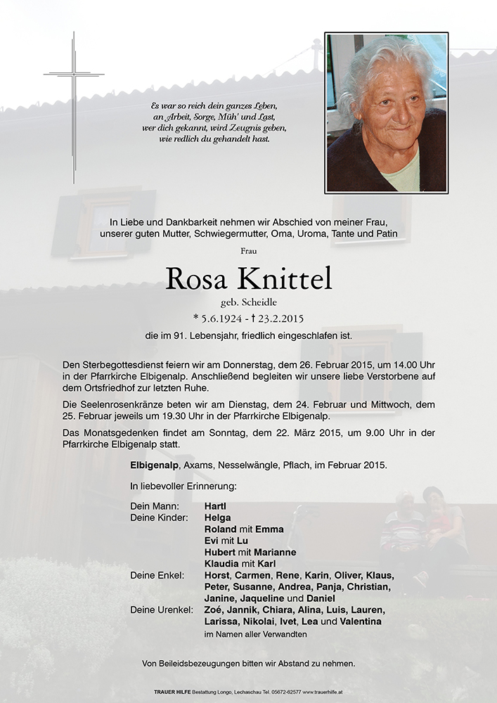 Kondolenzbuch für Rosa Knittel
