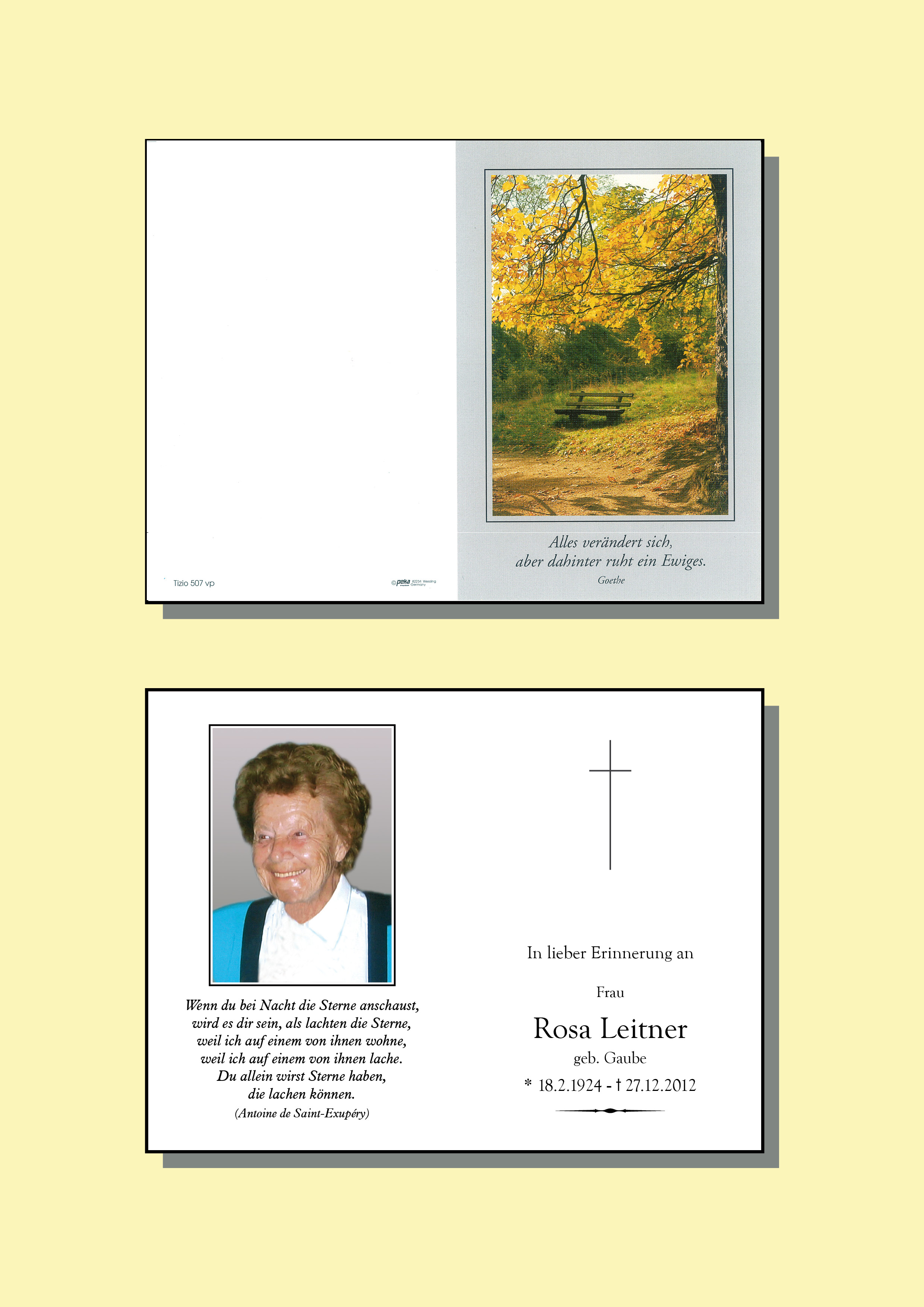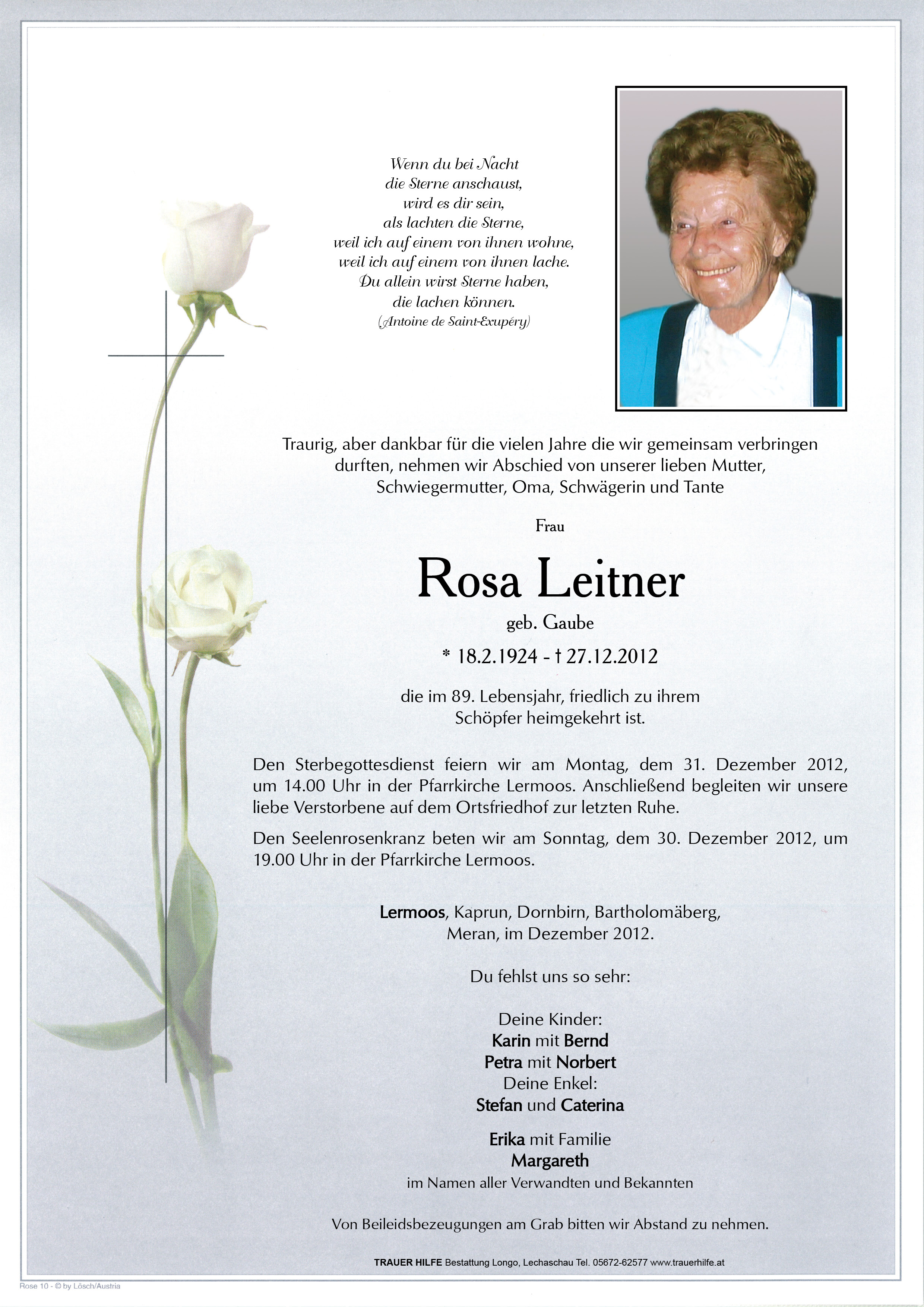 Kondolenzbuch für Rosa Leitner