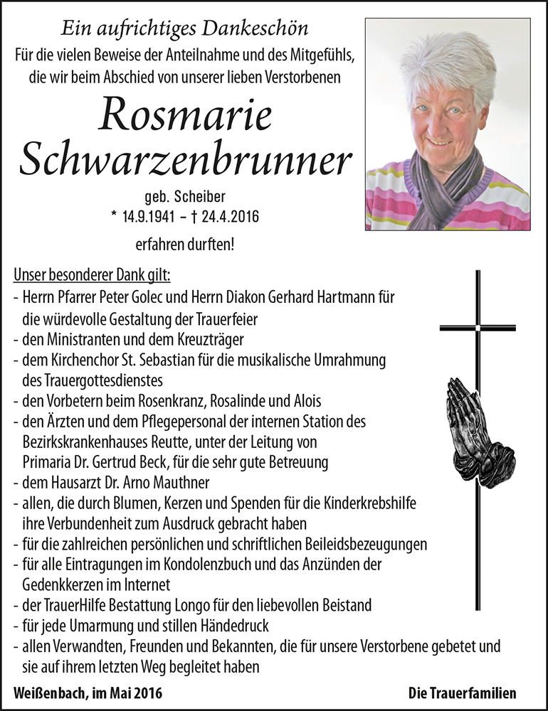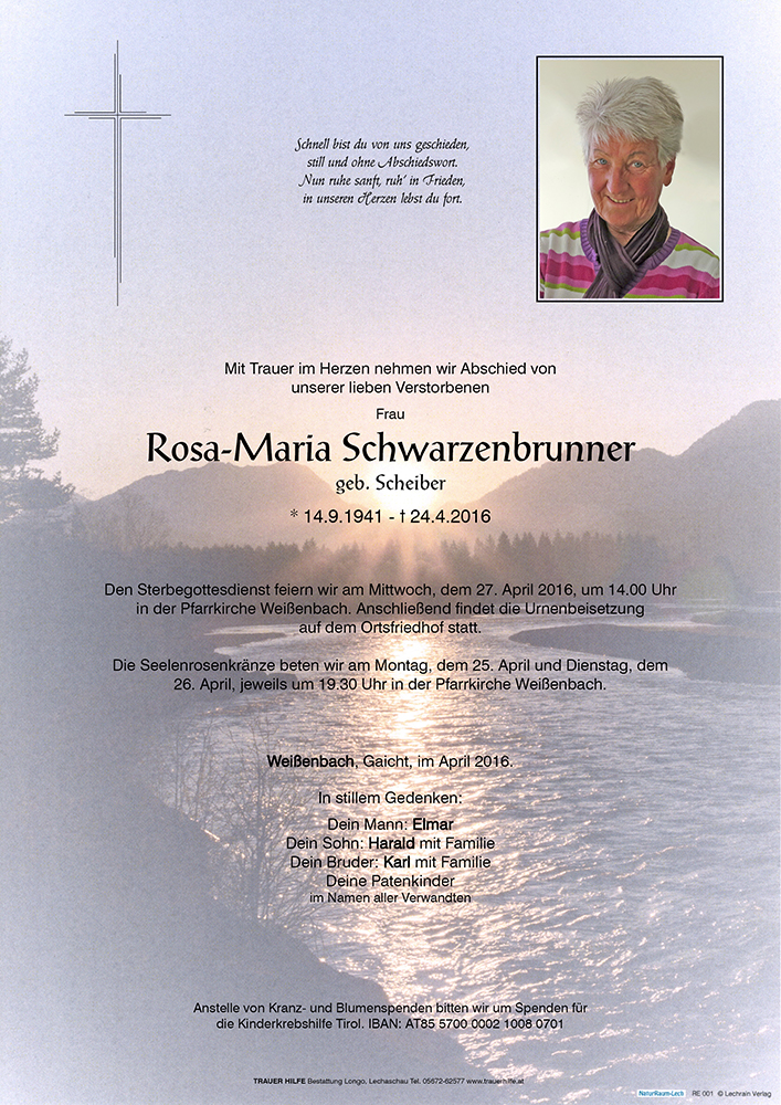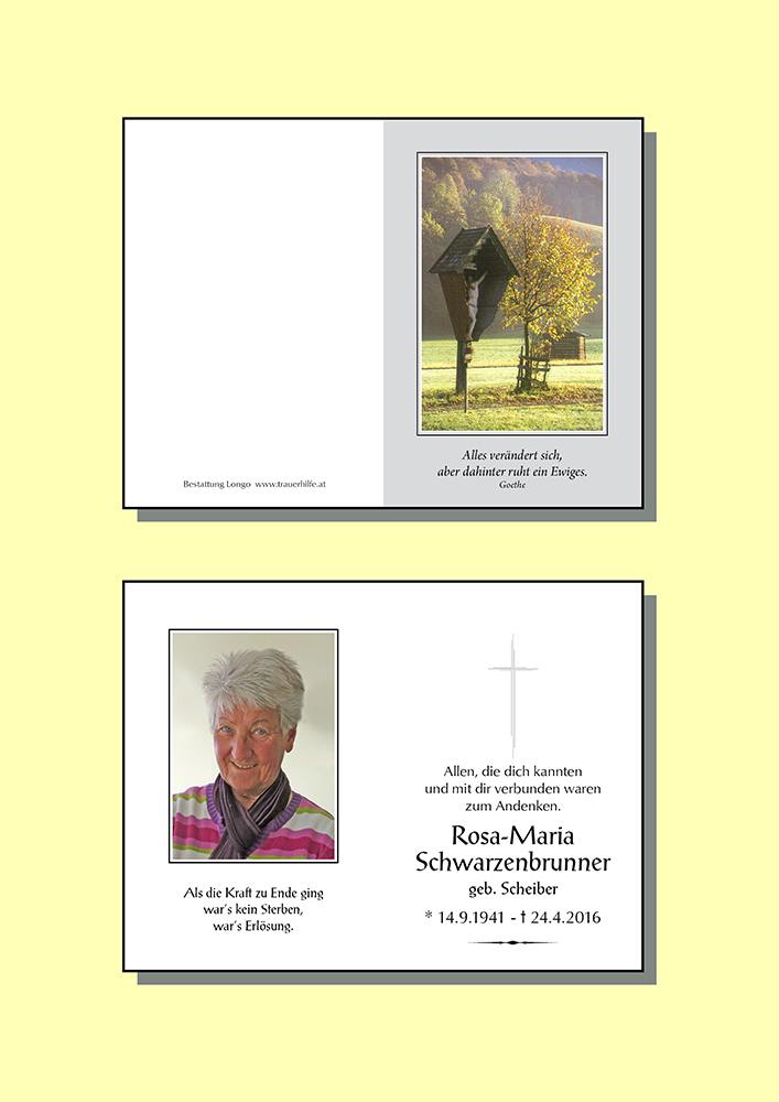 Kondolenzbuch für Rosa Maria Schwarzenbrunner