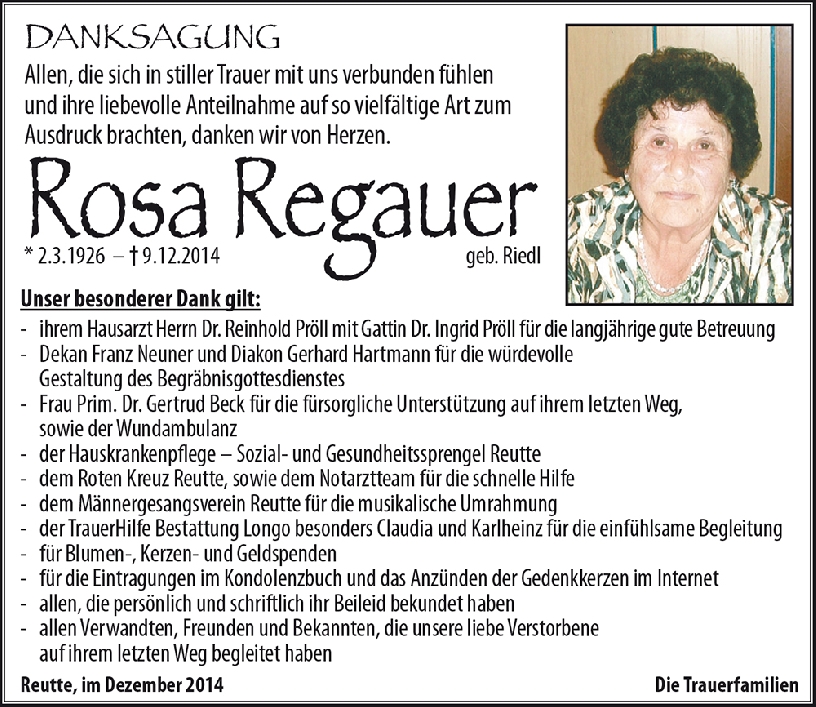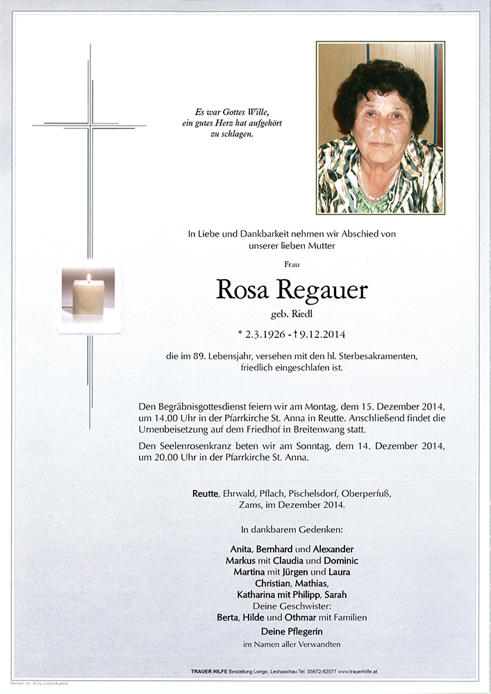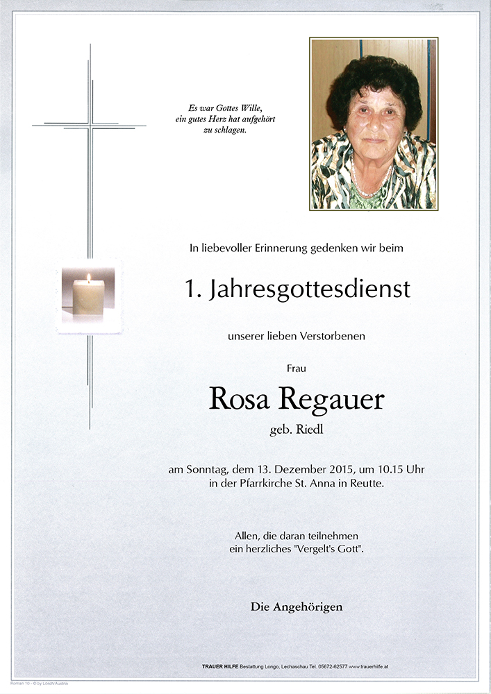 Kondolenzbuch für Rosa Regauer