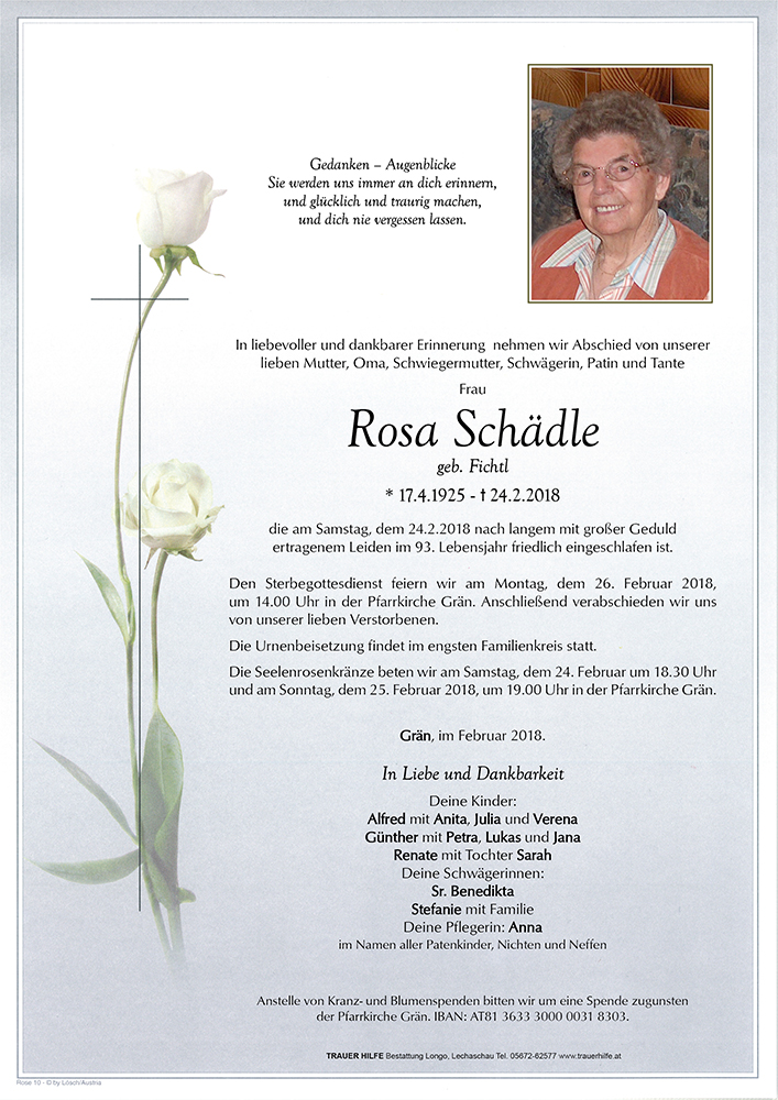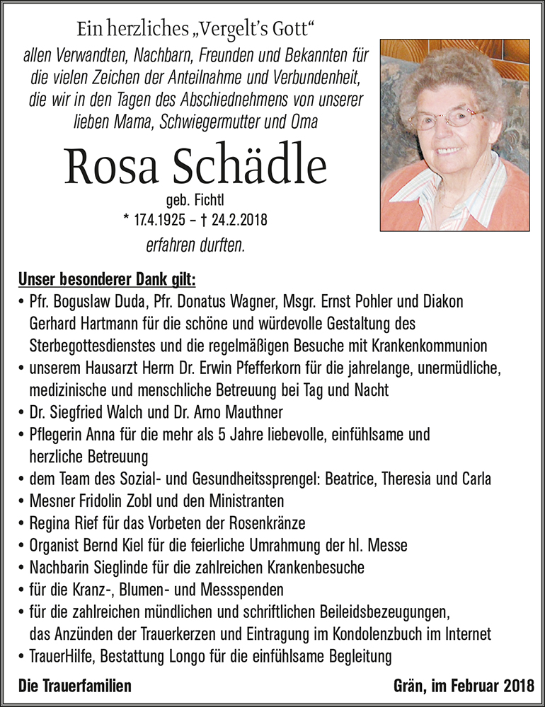Zum Heimgang eurer Mama und Oma möchten wir euch unsere aufrichtige Anteilnahme und unser Mitgefühl ausdrücken.