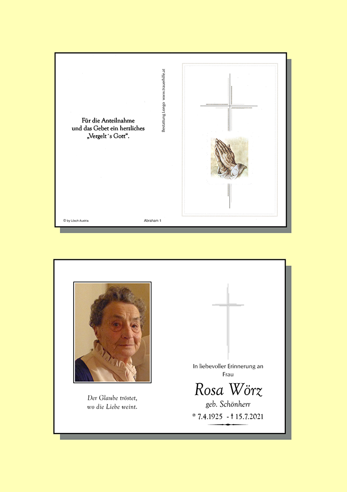Ein Mutterherz hat aufgehört zu schlagen. Ich werde Rosa in guter Erinnerung behalten. Ihre Bescheidenheit und Zufriedenheit haben mich stets beeindruckt.
