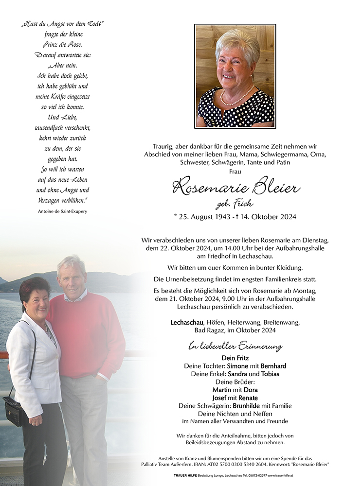 Fam. Karl und Maria Pellegrini 18.10.2024 um 11:18 Uhr