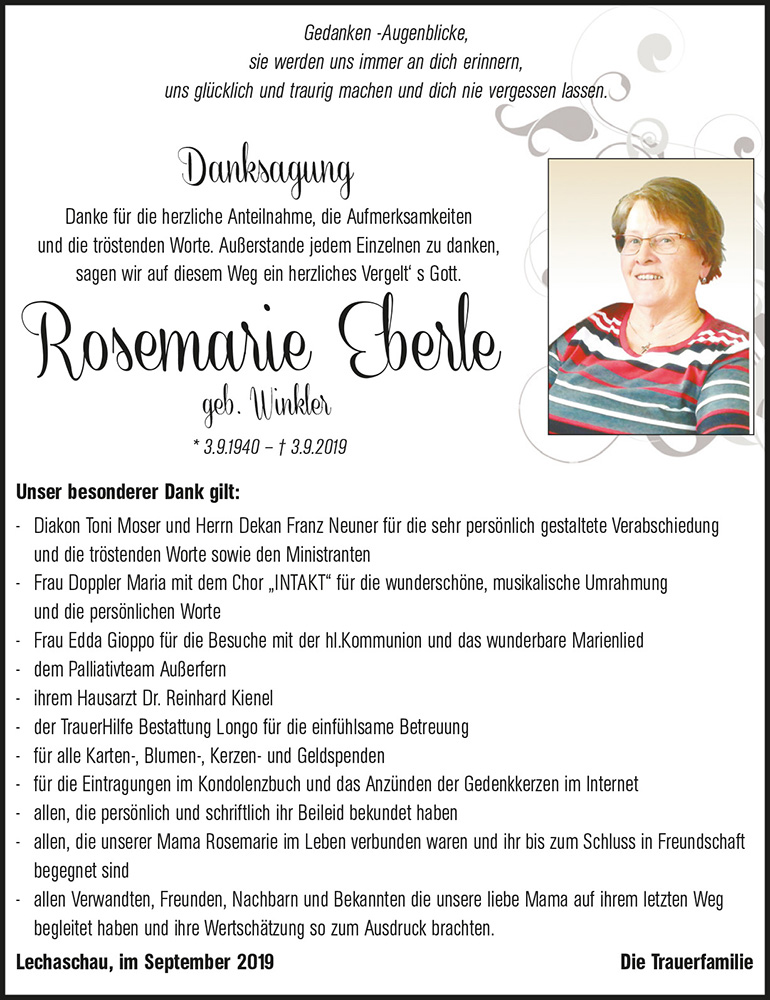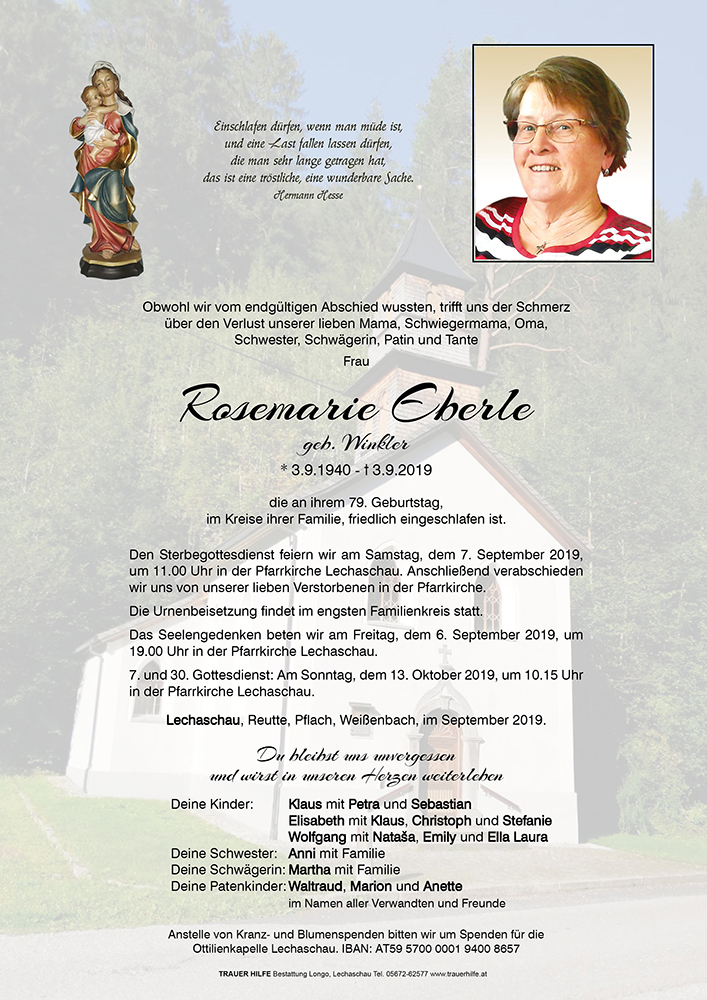 Liebe Trauerfamilie Eberle,lieber Klaus mit Familie,