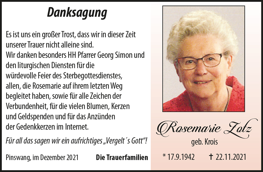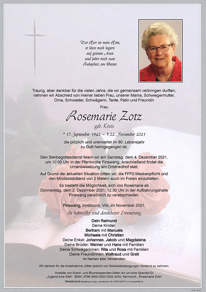 Kondolenzbuch für Rosemarie Zotz