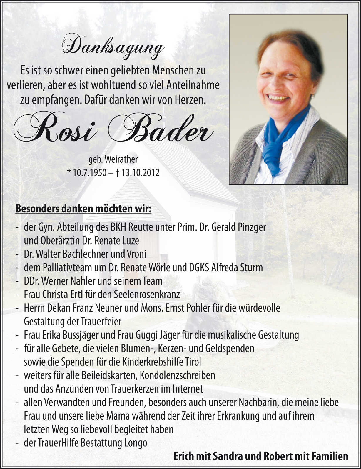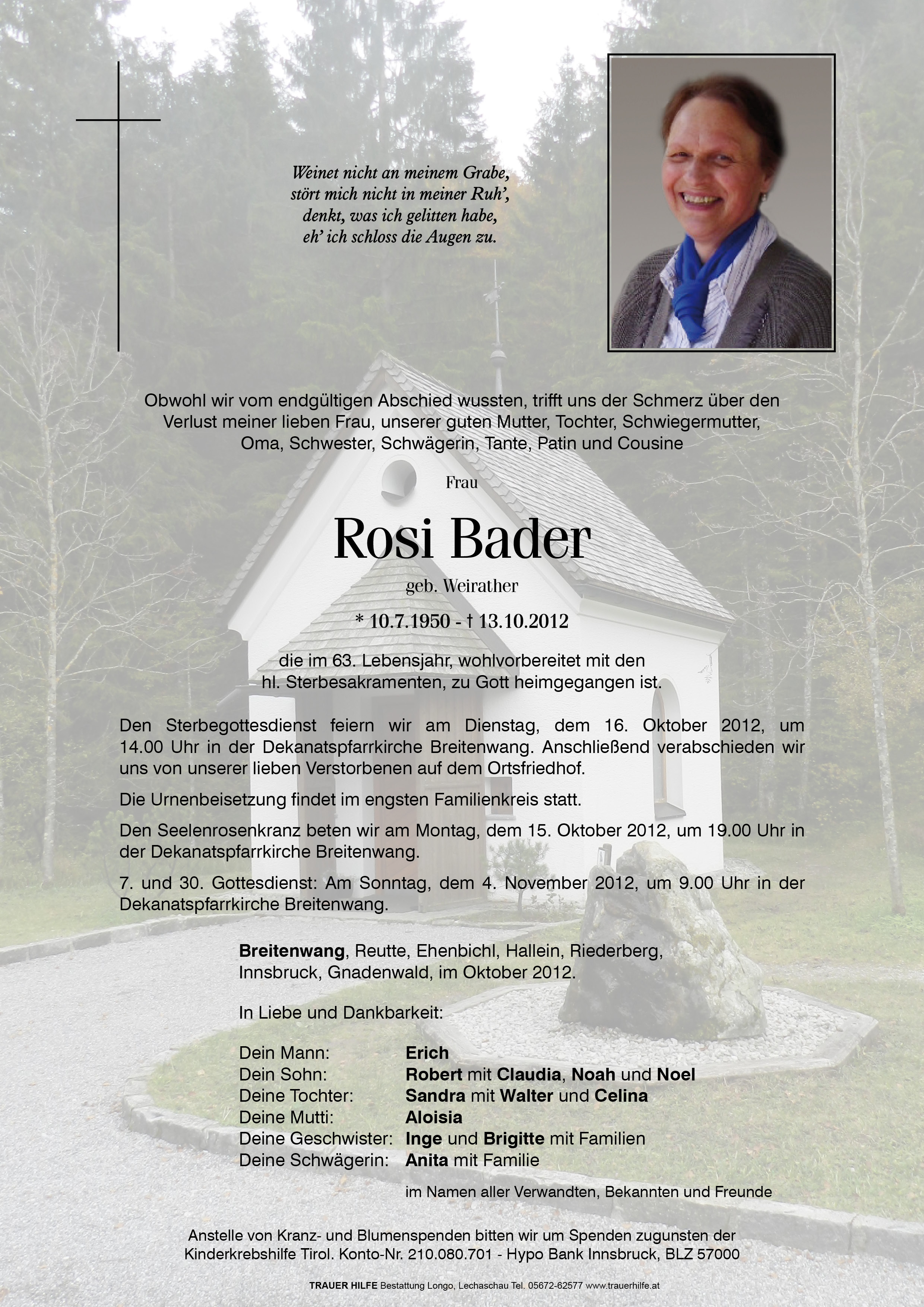 Kondolenzbuch für Rosi Bader