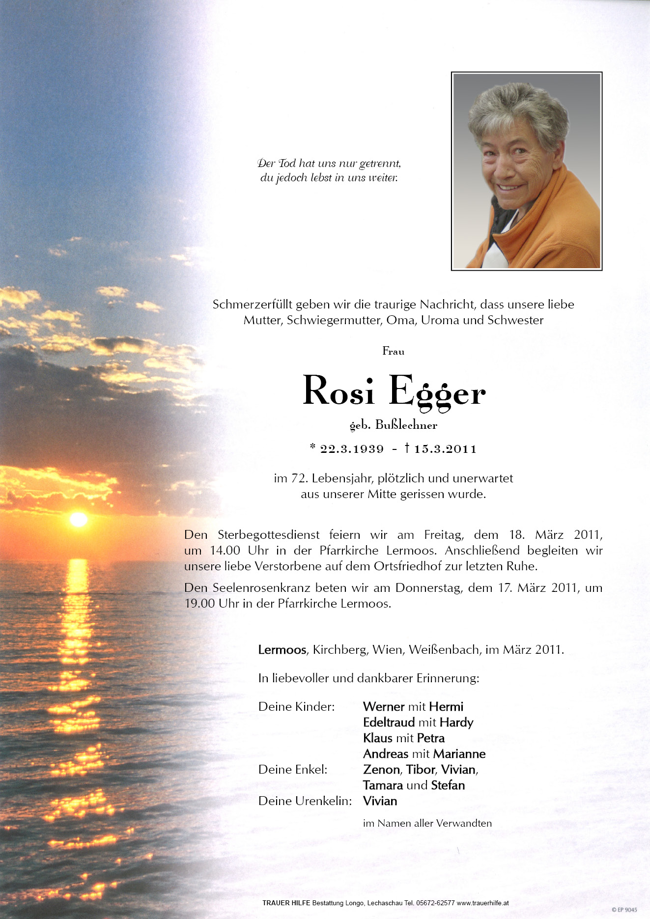 13.12.1901 15.03.2011 Lermoos Rosi Egger Action Parte Sterbebild Gedenkkerzen Kondolenzen Parte Sterbebild Gedenkkerzen Kondolenzen Parte herunterladen Sterbebild herunterladen Gedenkkerzen für Rosi Egger 14 Einträge Kerze anzünden Neujahrskerze für dich Ruhe in Frieden Ruhe in Frieden Weihnachtslicht Im stillen Gedenken Osterkerze In stillem Gedenken ruhe in frieden wir denken an dich A Liachtl für di andi andi Ruhe in Frieden Bruni mit Fam. . Ihre Gedenkkerze fürRosi Egger Ihr Name* Farbe auswählen Ihre Nachricht oder Name* E-Mail-Adresse* Mit dem Klicken auf "Kerze anzünden" erklären Sie sich mit unseren Datenschutzbestimmungen einverstanden. Kondolenzbuch für Rosi Egger 0 Einträge Kondolenz verfassen Ihr Abschiedsgruß an Rosi Egger Ihr Name* E-Mail-Adresse* Ihre Nachricht* Mit dem Klicken auf "Gruß absenden" erklären Sie sich mit unseren Datenschutzbestimmungen einverstanden.