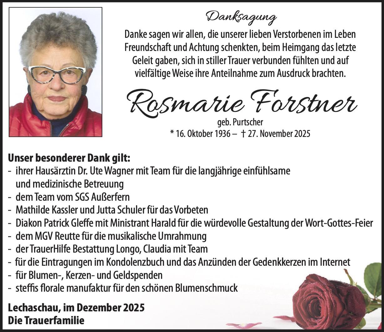 Liebe Frau Forstner nun haben Sie Ihre letzte Ruhe gefunden und sind mit Ihren Liebest wieder vereint.