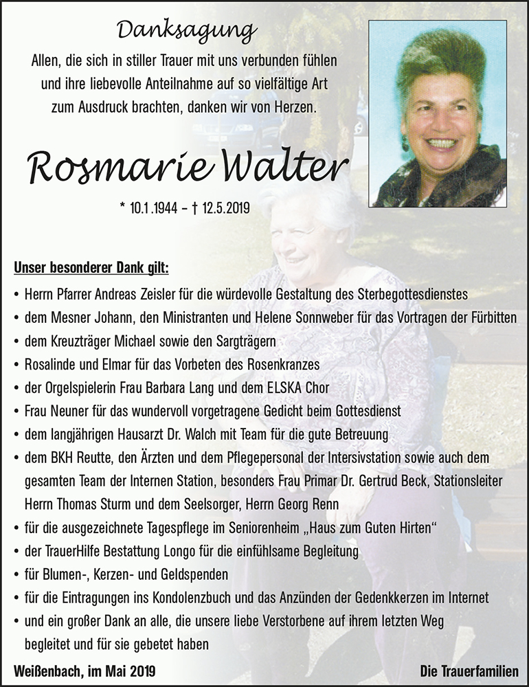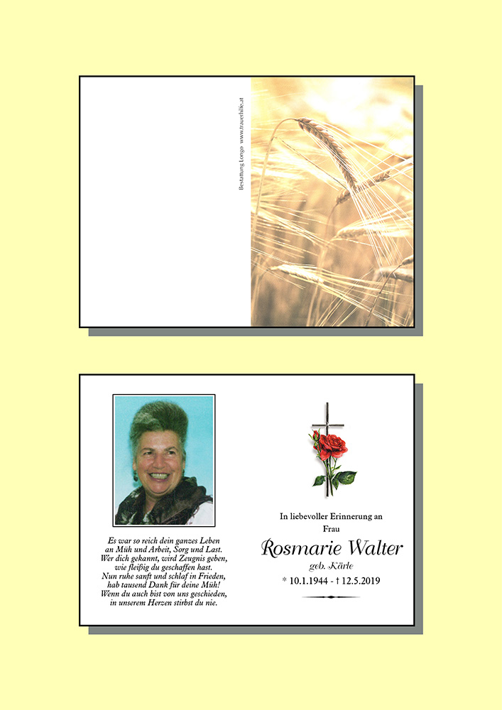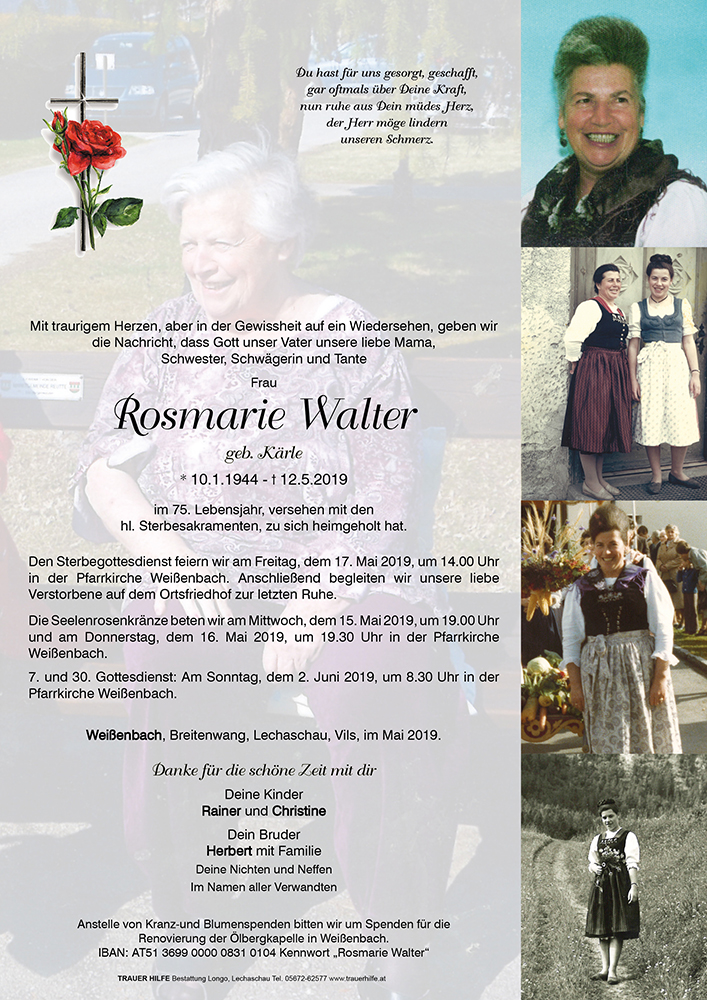 geschenkt habt, weiterhin viel, Kraft und Gottes Segen für die schwere Zeit, aber großer Trost auf ein Wiedersehen mit euren Lieben, im Gebet verbunden, Helene Sonnweber, Rosemarie hat mich noch im April zum Geburtstag angerufen, danke!