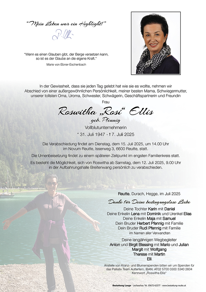 Kondolenzbuch für Roswitha Ellis