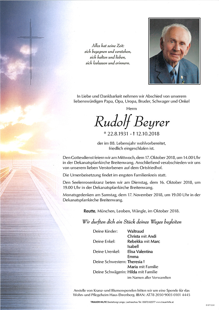 Kondolenzbuch für Rudolf Beyrer