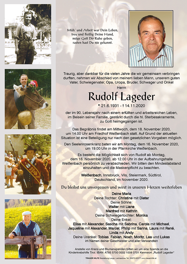 Mit ein paar persönlichen Zeilen möchte ich mich nun von eurem geliebten Papa und Opa, von meinem Freund Rudl verabschieden: