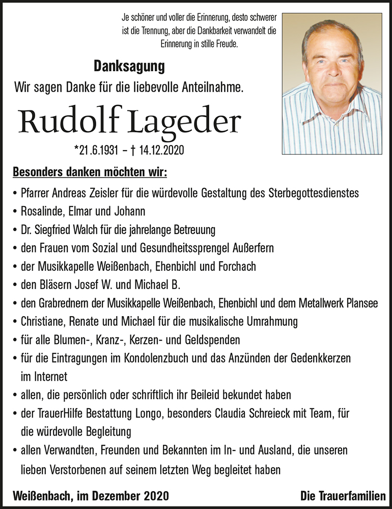 Viel Kraft wünschen wir den Hinterbliebenen in der Zeit der Trauer.