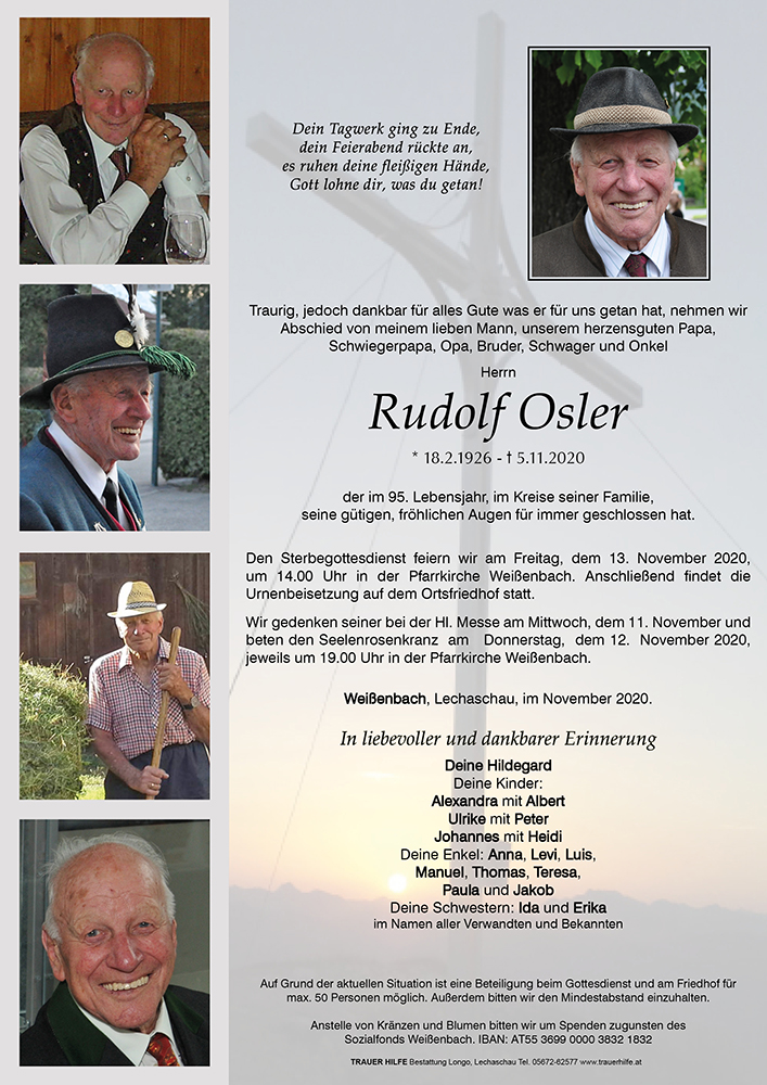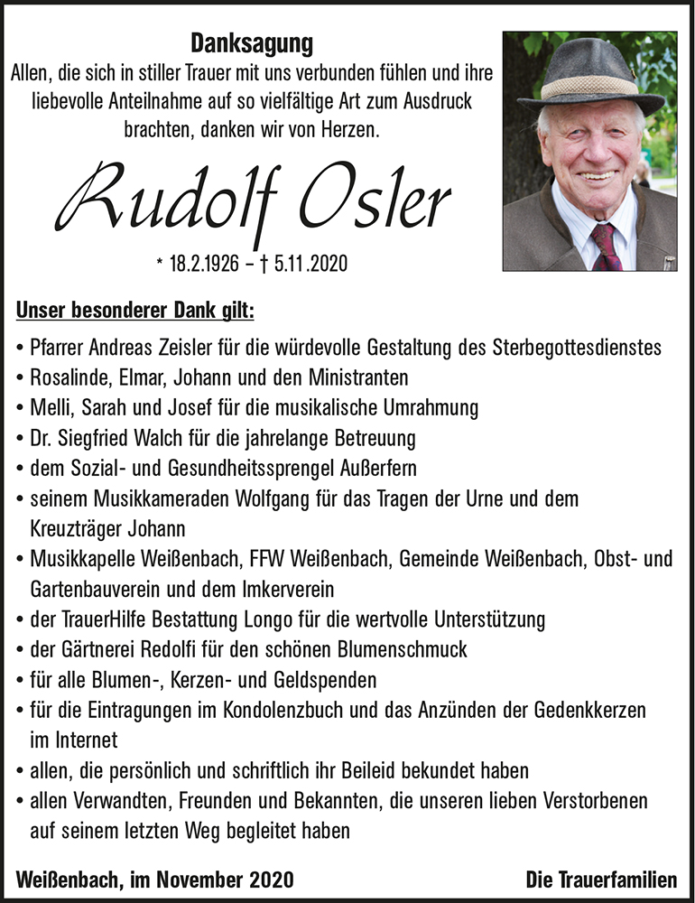 18.02.1926 05.11.2020 Weißenbach am Lech Rudolf Osler Action Parte Sterbebild Gedenkkerzen Kondolenzen Danksagung Parte Sterbebild Gedenkkerzen Kondolenzen Danksagung Parte herunterladen Sterbebild herunterladen Gedenkkerzen für Rudolf Osler 301 Einträge Kerze anzünden Zur Erinnerung an unseren Opa Christiane und Stefan mit Fam. Fam. Kastner René In lieber Erinnerung Fam. Kastner René Patricia, Walter, Alexandra und Philip A liachta für di Frohe Ostern Opa Stefan & Christiane mit Fam. RIP+ew.Freude Bruno + Ingrid Posch Ruhe in Frieden! Marianne Pohler m. Kindern In lieber Erinnerung! Paula und Jakob Paula und Jakob Im Gedenken - Fam. Pohler Marianne Im Gedenken - Fam. Pohler Marianne Ein Licht zum Jahrestags-Gedenken Elmar mit Fam. _Paznaun Paula und Jakob mit Familie Elmar mit Fam. _Paznaun RIP + ew. Freude Bruno + Ingrid Posch Paula und Jakob mit Mama und Papa Patricia, Walter, Alexandra und Philip Bernadette & Herbert Krammer Hannelore & Toni Lutz Paula und Jakob RIP + ew. Freude Bruno + Ingrid Posch Walter, Patricia mit Alexandra und Philip in lieber Erinnerung Elmar mit Fam, Paznauntal Elmar, Gabi, Fabian & Leonie Mein tiefempfundenes Beileid, Ulli Kerle Paula und Jakob Elmar mit Fam, Paznauntal Elmar, Gabi, Fabian & Leonie Segenn und Gruß Bruder Werner Fam. Klaudia u Florian Rief Bernhard & Martina mit Lisa Irmi und Matthias Rief Elmar mit Fam, Paznauntal Thomas WITTING Fam. Eva-Maria Kleiner Karl und Maria Posch Elmar, Gabi, Fabian & Leonie Fam. Lilli und Walter Lageder Wörz Reini und Ingrid Fam. Klaudia u Florian Rief Siegfried F. Kerle Barbara und Dieter Fam. Andreas & Romana Schweissgut Fam. Dagmar und Andreas Kerle Fam. Peter und Daniela Singer Ruhe in Frieden, Ulli Kerle Oswald und Barbara Fam. Caroline Posch Michael mit Judith & Noah Maria Weirather Fam. Kurt Pohler Maria und Hermann Rief Sophia Koch Andreas, Heike, Lukas, Carmen Fam. Beate Jäger Hannes Arzl Reinhold u. Gabi mit Fam. Fam. Roland u. Bea Friedl Silke u. Thomas Hofherr m. Fam. Dieter Feuersinger Fam. Daniel Falger Fam. Michael und Manuela Tschiderer Fam. Klaudia u Florian Rief Sonja und Christian Moll Alois Koch Fam. Albert & KorneliaPosch Laura Lageder Elmar mit Fam, Paznauntal Fam. Ernst und Magdalena Spitzer Bernhard und Helene Posch Manuela Sörgel mit Familie Franz Hartmann Priska u Jürgen Kerle mit Kindern Priska u Jürgen Kerle mit Kindern Priska u Jürgen Kerle mit Kindern Fam. Christiane u. Peter Ralser Franz Alber Gerhard Dreier Fam. Kurt & Karina Falger Team des SGS Ausserfern Fam. Stefan Beirer Ingrid und Reinhold Jenul Aufrichtige Anteilnahme Fam. Franz Gruber Fam. Walter Leitgeb Beate Scheidle mit Familie Manuela Mentler Carmen Senn, Strengen Ferdl und Moni Sprenger Fam. Andreas & Tanja Lutz Fam. Andreas & Tanja Lutz Fam. Andreas & Tanja Lutz Fam. Elisabeth Wiedemann Melanie Wex Peter & Sabine Pamperl Pfiat di lieber Papa - wir vermissen dich! Fritz Bubendorfer Fam. Monika & Christian Kerle Brigitte Müller Schrötter Benjamin Dischl Astrid und Herbert Maninger Edith Posch Carola Adler Walch Elisabeth Birgit, Gerhard u. Kevin Arzl Helene und Richard Gruber Fam. Hansjörg und Marianne Wörz Fam. Hansjörg & Andrea Schrötter Horst u Simone Weirather Ruhe in Frieden Walch Helga Ruhe in Frieden Schweißgut Joachim mit Fam. Alexandra Wötzer mit Familie Ruhe in Frieden Bruno HAUG In stillem Gedenken Richard Wasle Verena und Roland Scheucher Meier Markus Karl & Erika Scheiber ELMAR ISENBURG Fam. Bernd u. Petra Scheiber Maria & Albert Wilhelm Claudia Hohenrainer mit Familie Fam. Manuel & Conny Lutz Fam. Singer Christian + Beatrix Frank Lutz mit Familie Fam. Michael & Christina Weirather Fam. Salvenmoser Christoph Fam. Rudi Gehring Grän Peter Lang mit Familie Helga und Sieghard Leiter Kaserer Bettina mit Familie Olsacher Helga & Toni Lutz Franzi Winkler Fam. Reinhard Lechleitner Ferdl & Berni Fam. Weirather Johann Anni Wanner Gustl & Marika Huber Fam. Christian Singer Fam. KASTNER René Lutz Rudi mit Familie Ruhe in Frieden. Der Ortsbauernrat. Anette mit Annika und Lukas Andrea Drexel Fam. Daniel und Vroni Pfefferkorn Gabi und Hans Dreier Willi u Elsa Kaiser S. Mayrhofer (ehem. Schuh Koch) Ruth Isenburg Sabine Linzgieseder Katrin Santer-Astl Raimund & Simone mit Emma & Hannah Fam. Annemarie Weirather- Hofer Astrid Pflauder Fam. Josef Osler Erich Sprenger Meinrad und Brigitte Scheiber Oktavio und Christine Ausserhofer Marlies Breithuber Fam. Kuisle Ernst Herbert und Roswitha Lechleitner Werner und Karin Kößler Johanna und Albert mit Felizia und Valeria Birgit Strasser (Wechner) Fam. Johann Melbler Heidi Wex Ehrwald Margreth und Kurt Wendlinger Marlene und Sepp Lutz Fam. Uwe & Daniela Schweißgut Martina Posch Karl und Maria Posch Elli Köpfle-Holl m. Fam. Gerhard und Elisabeth Mader Ingrid und Toni Reither mit Familie Gerda u. David Ladinig Im Gedenken, Emil und Luzia Wechselberger Pfiati Opa dei Paula Berta Wechselberger R. I. P Eduard Köck Silvia u. Elmar Beirer Ariela, Christoph, Arian, Irina Simone Entstrasser Andres Bettina Feineler-Hofer Verena und Michael Prackwieser Pfiati Sandra, Blanch und Leonie Barbara u. Klaus Wechselberger Manfred u. Katharina Lageder Sandor, Ursula, Daniel, Julia Fam. Kerber Andreas u Daniela Fam. Bernd und Carola Spitzer Gabi & Christian Koch Forcher Erich und Vroni Christiane Posch Alexandra, Gerd, Emilie, Tristan Fam. Uwe u. Elisabeth Kerle R. I. P. Franz Kögl Fam. Elisabeth und Thomas Weirather, Wängle Manuela Baldauf Hermann Schrötter mit Familie Wolfgang u. Renate mit Dominik und Daniela Josef Walch u. Anita Walch-Lang Birgit und Markus mit Hannah Rid Daniela und Michael mit Kinder Gerlinde Hengg mit Familie Levi für Opa Klaus und Carmen mit Simon Burgi Fam. Gerhardt Niels Tina & Armin Kerber Fam. Manfred Waldvogel Fam. Carola Friedl ( Lechleitner) Irmgard und Günter Dischl Alex und Michi mit Fabio und Luca Zotz Tanja m. Fam. Fam. Sabine u. Christian Alber Katja Dischl Fam. Bernhard Eberhard Ulrike & Karl Kerle Agnes und Luis Alber Albin und Monika