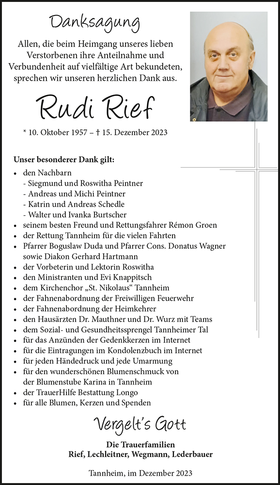 mit Rudi verlieren wir einen herzensguten, positiven Menschen, den wir sehr schätzten. Wir wünschen Euch viel Energie, Zeit und Geduld, um diesen schmerzlichen Verlust zu verarbeiten. Rudi wird mit Freude und Liebe von Gottes offenen Armen aufgenommen werden.