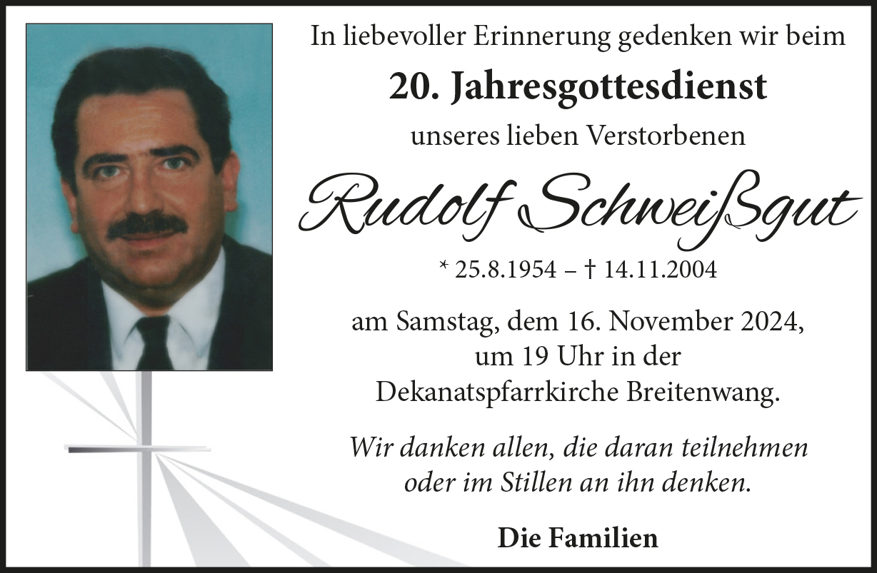 25.08.1954 14.11.2004 Breitenwang Rudolf Schweißgut Action Parte Gedenkkerzen Kondolenzen Jahrestag Parte Gedenkkerzen Kondolenzen Jahrestag Parte herunterladen Gedenkkerzen für Rudolf Schweißgut 9 Einträge Kerze anzünden Elmar Elmar In stillem Gedenken Silvia ? Markus Meier Doris Pepi Kogler Fam.Eberharter Peter und Anita Zum 20. Jahrtag Oskar u. Marlies Ginther Fam.Günter & Gitti Muglach Ihre Gedenkkerze fürRudolf Schweißgut Ihr Name* Farbe auswählen Ihre Nachricht oder Name* E-Mail-Adresse* Mit dem Klicken auf "Kerze anzünden" erklären Sie sich mit unseren Datenschutzbestimmungen einverstanden. Kondolenzbuch für Rudolf Schweißgut 0 Einträge Kondolenz verfassen Ihr Abschiedsgruß an Rudolf Schweißgut Ihr Name* E-Mail-Adresse* Ihre Nachricht* Mit dem Klicken auf "Gruß absenden" erklären Sie sich mit unseren Datenschutzbestimmungen einverstanden. Jahrestag herunterladen