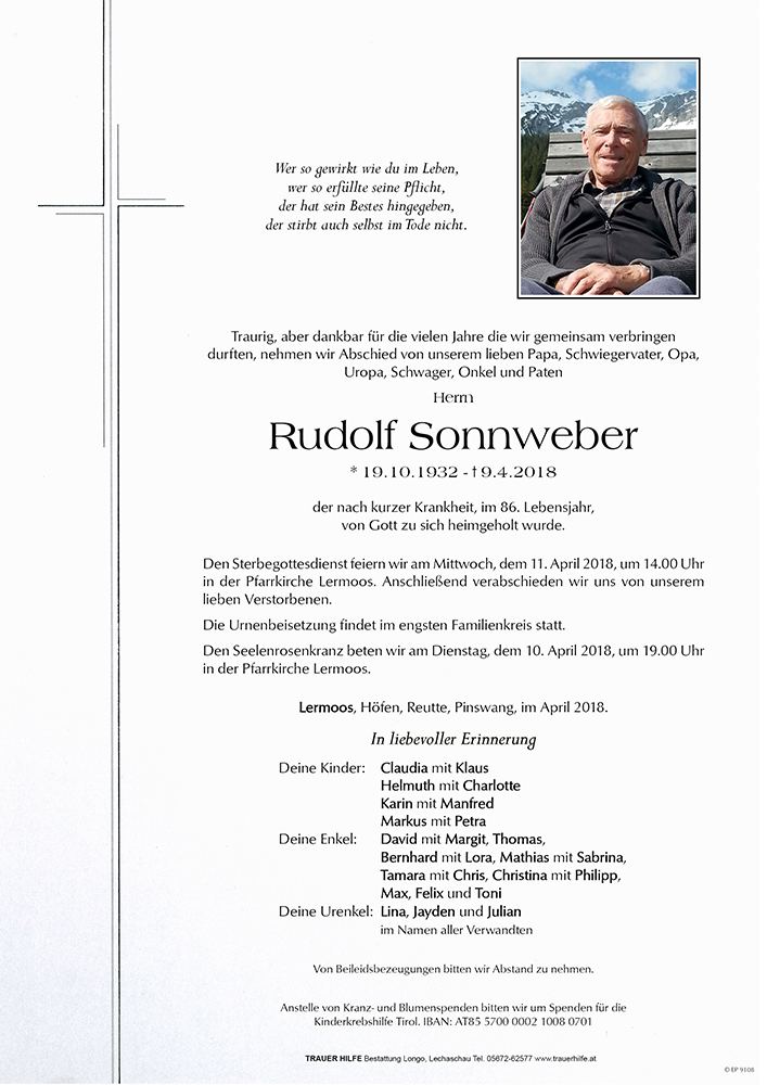 Es ist uns ein Bedürfnis euch zum Tod eures Vater unsere tiefe Anteilnahme aus zudrücken