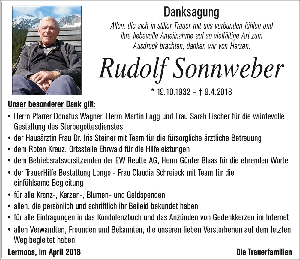 Wir dürfen den Angehörigen und Freunden unser aufrichtiges Mitgefühl entbieten.