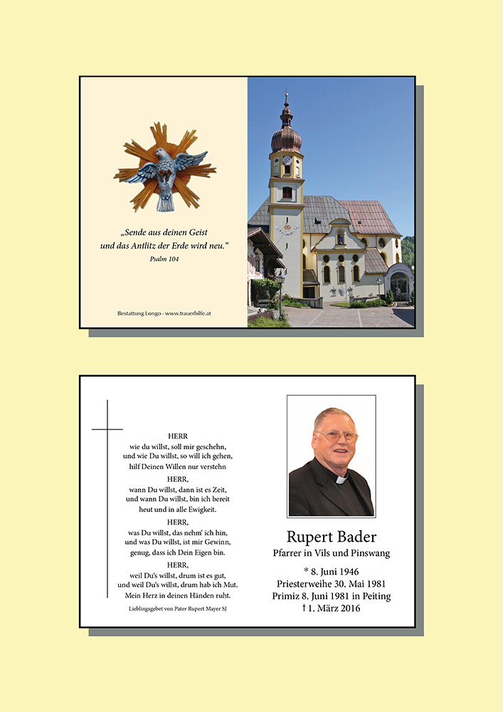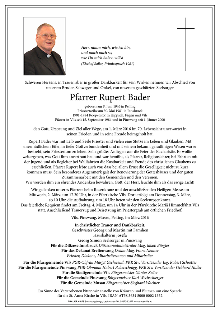 Der Gott des Lichtes und des Lebens geleite Pfarrer Rupert auf seinem Weg in die ewige Heimat.