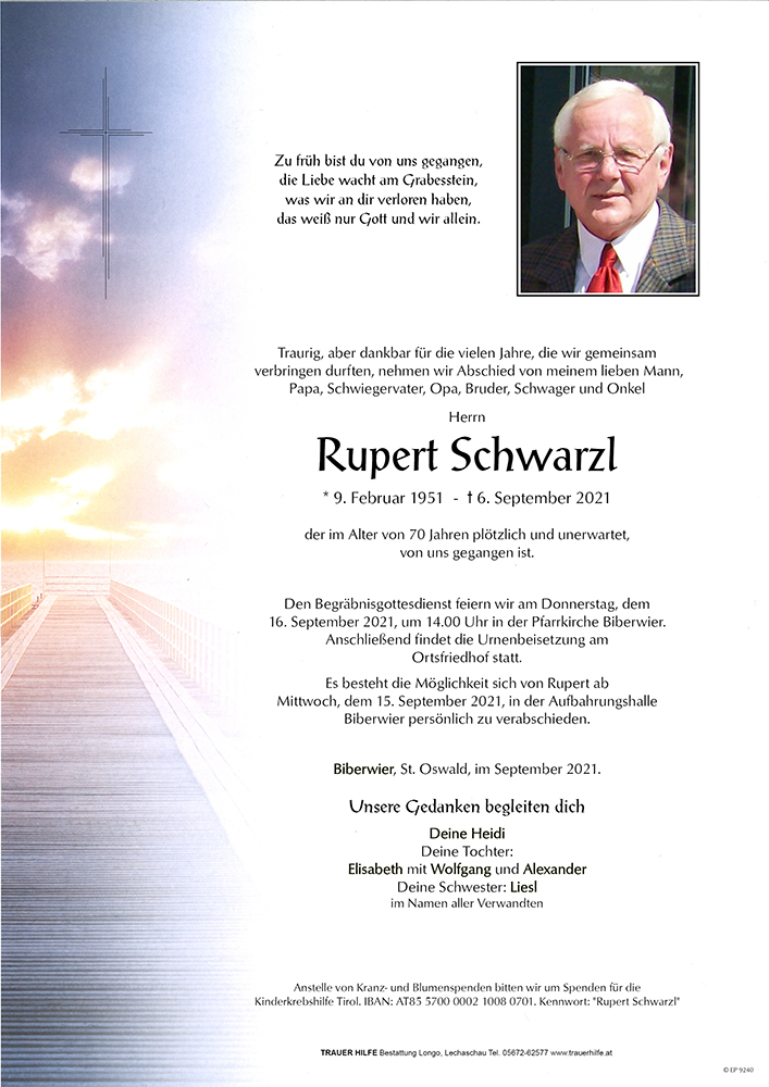 Kondolenzbuch für Rupert Schwarzl