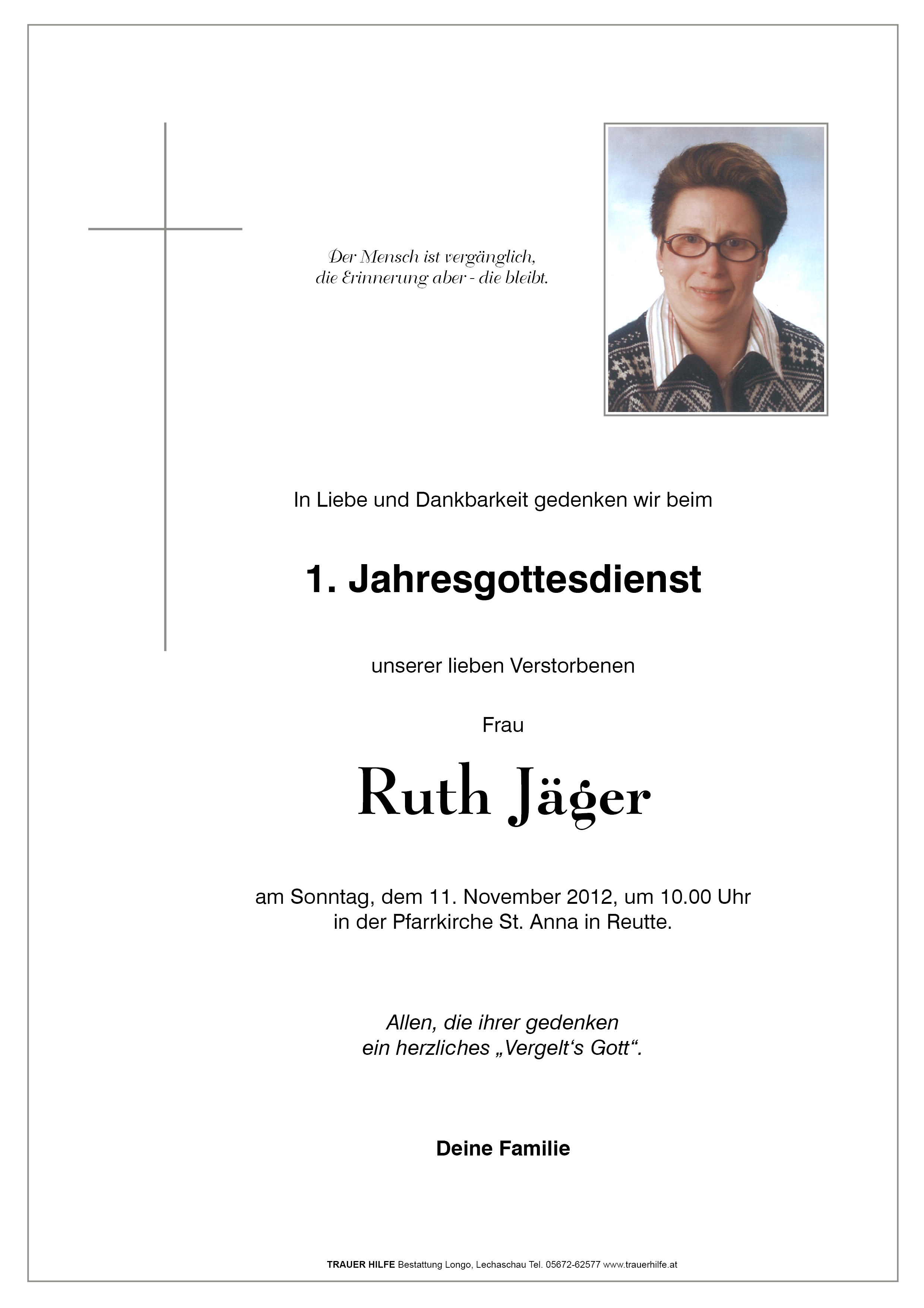 Kondolenzbuch für Ruth Jäger