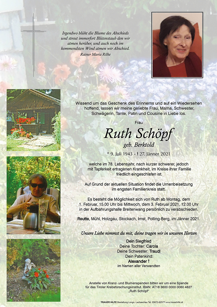 Kondolenzbuch für Ruth Schöpf