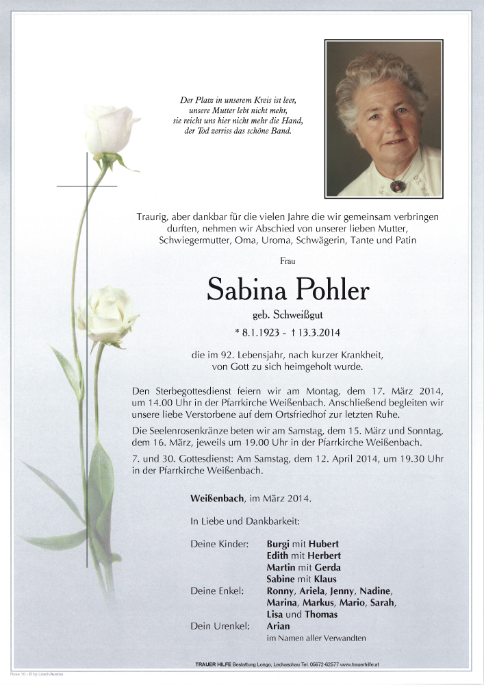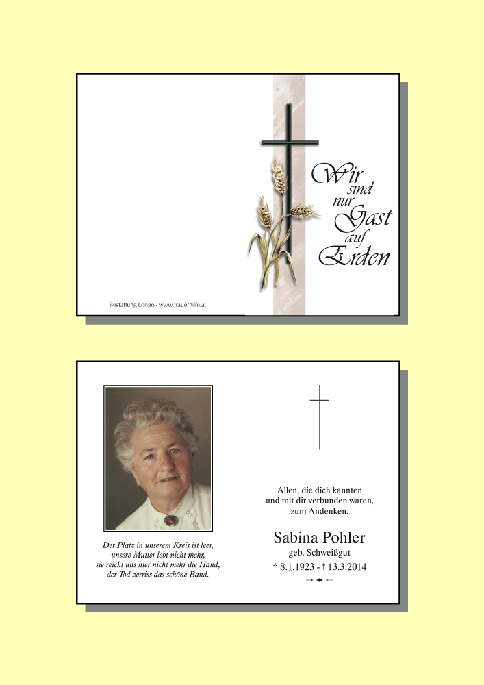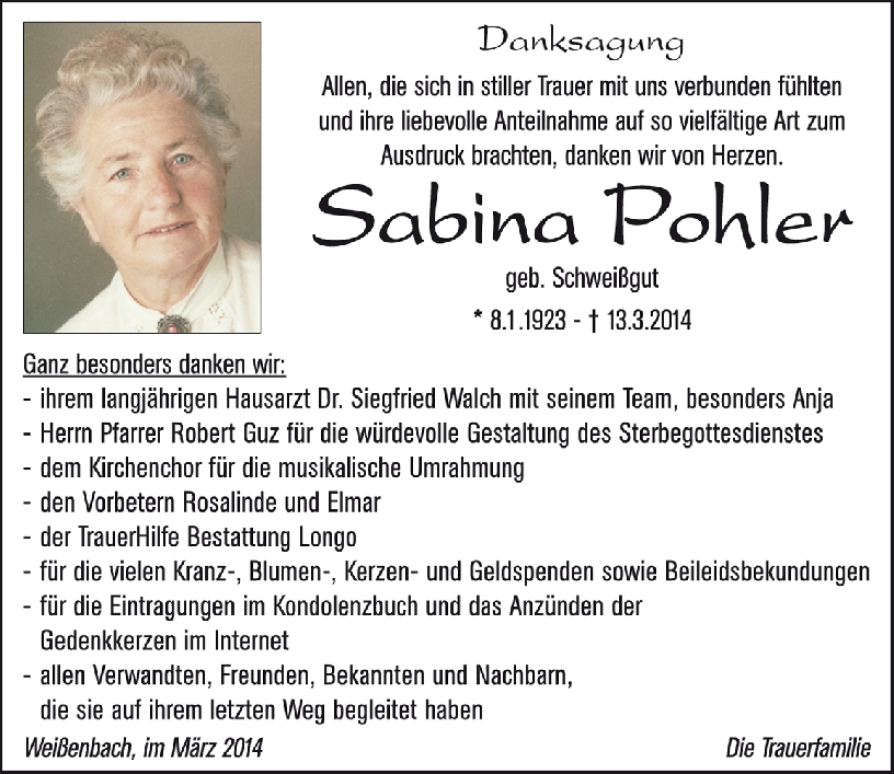 Kondolenzbuch für Sabina Pohler