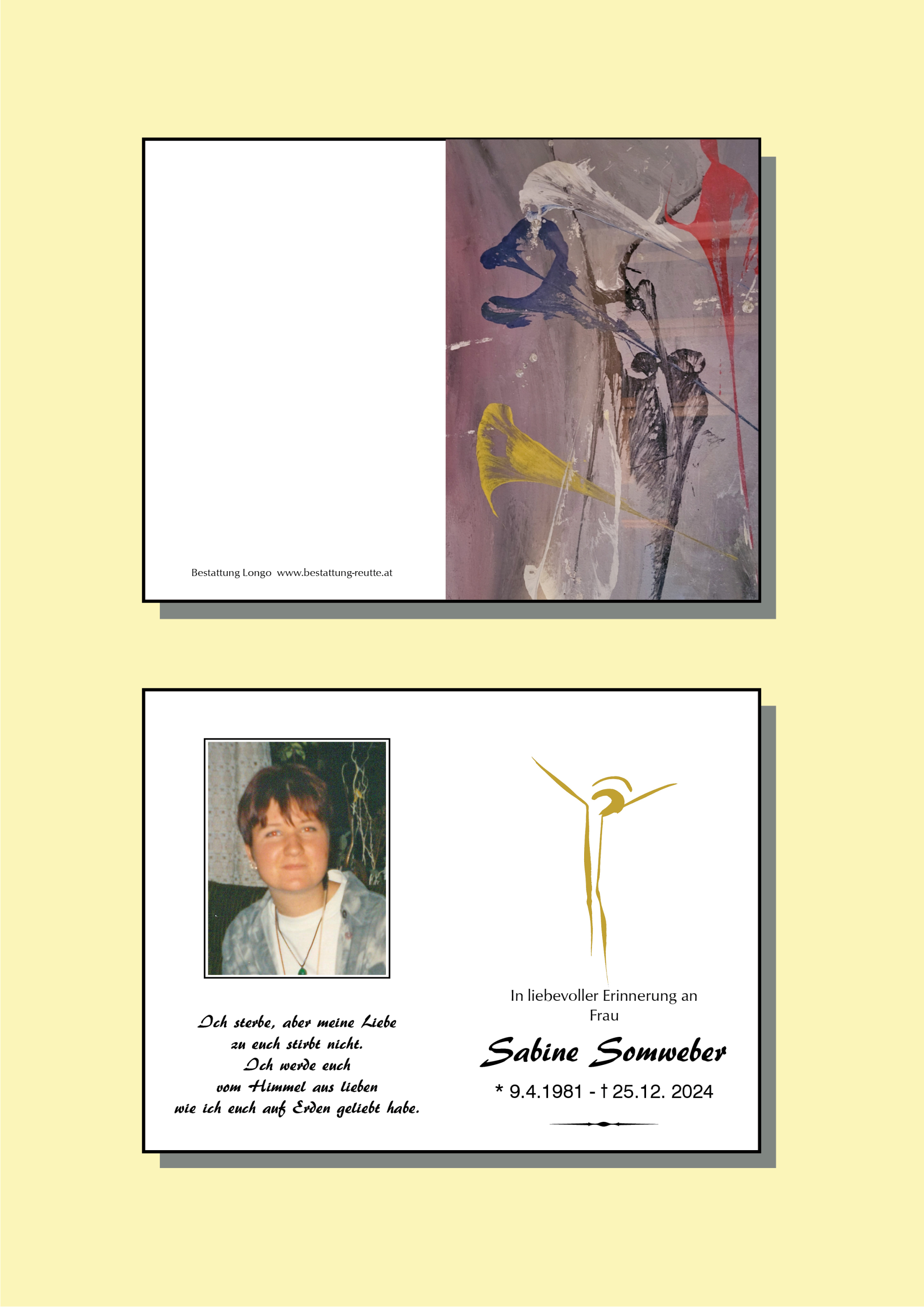 Aufrichtige Anteilnahme am Heimgang Eurer geliebten Sabine, entbietet: Ingrid Kraxner m. Familie!