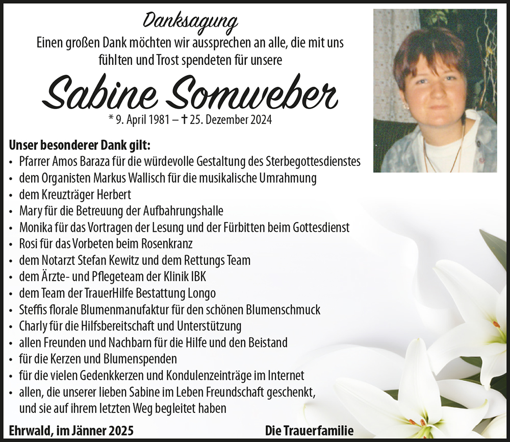 Kondolenzbuch für Sabine Somweber