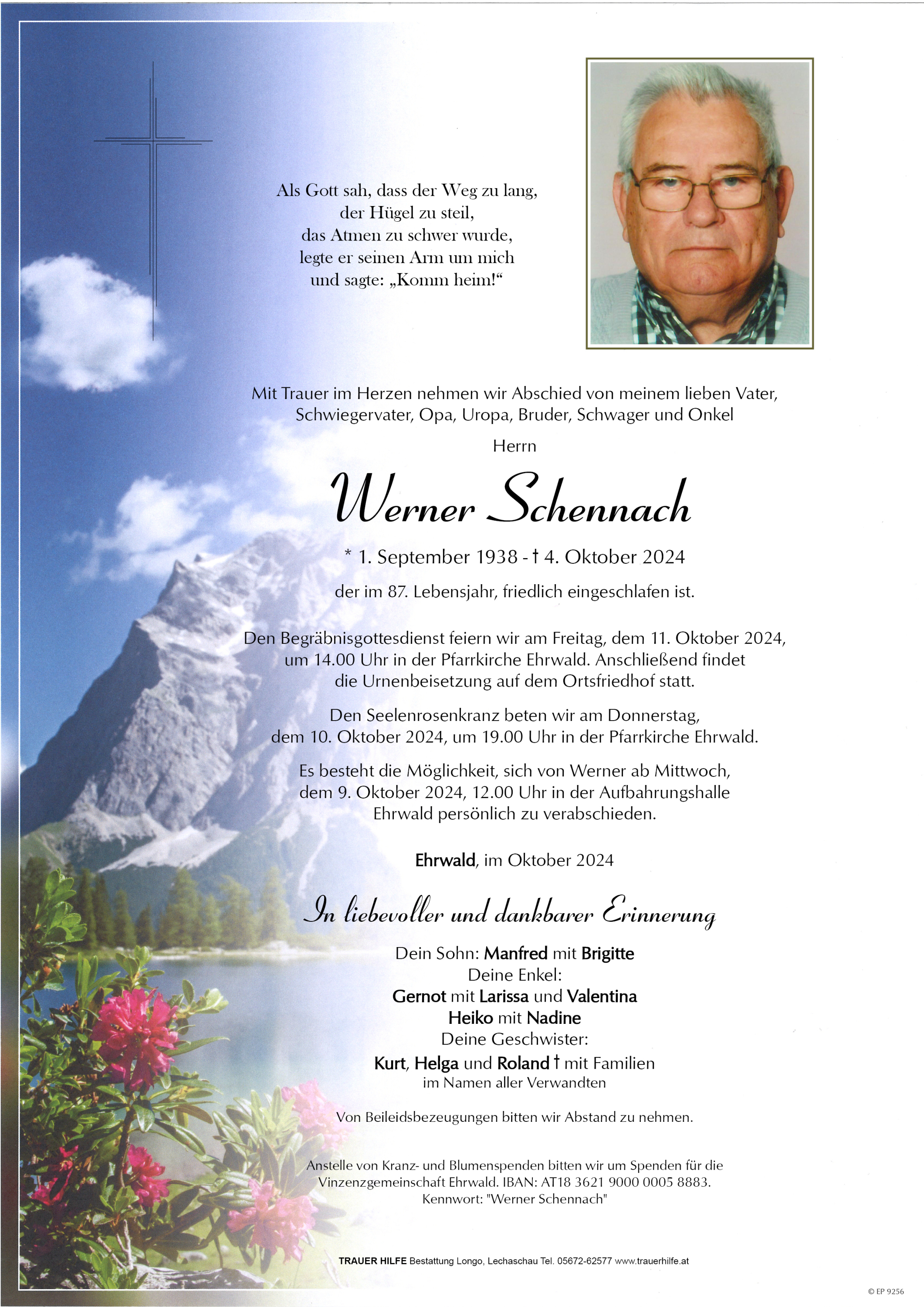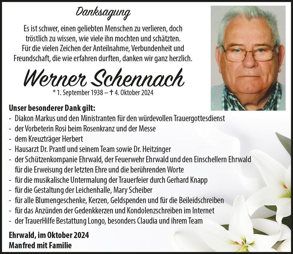 Mögen glückliche und schöne Erinnerungen an euren Vater und Opa Werner in euren Herzen weiterleben.