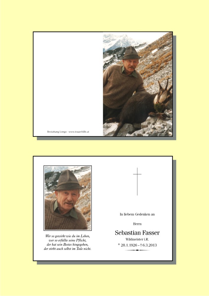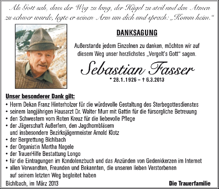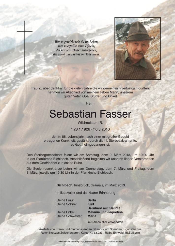 Leider kann ich beim Begräbnis nicht dabei sein, ich werde aber in Gedanken bei euch sein und Wastl ein ehrendes Andenken bewahren.