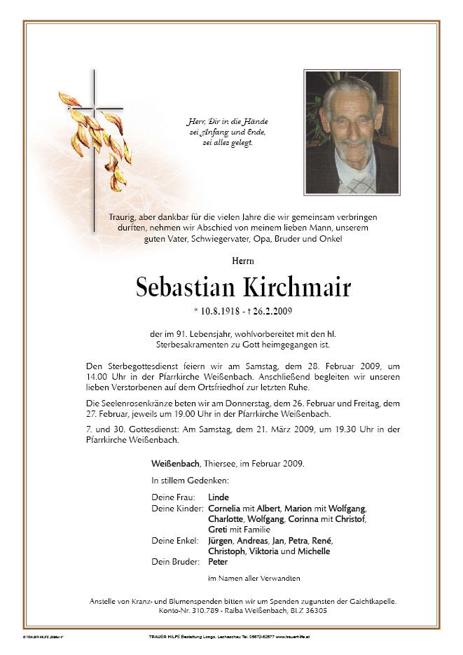 13.12.1901 26.02.2009 Weißenbach am Lech Sebastian Kirchmair Action Parte Gedenkkerzen Kondolenzen Parte Gedenkkerzen Kondolenzen Parte herunterladen Gedenkkerzen für Sebastian Kirchmair 1 Eintrag Kerze anzünden Ingrid + Bruno Posch Wbch. Ihre Gedenkkerze fürSebastian Kirchmair Ihr Name* Farbe auswählen Ihre Nachricht oder Name* E-Mail-Adresse* Mit dem Klicken auf "Kerze anzünden" erklären Sie sich mit unseren Datenschutzbestimmungen einverstanden. Kondolenzbuch für Sebastian Kirchmair 0 Einträge Kondolenz verfassen Ihr Abschiedsgruß an Sebastian Kirchmair Ihr Name* E-Mail-Adresse* Ihre Nachricht* Mit dem Klicken auf "Gruß absenden" erklären Sie sich mit unseren Datenschutzbestimmungen einverstanden.