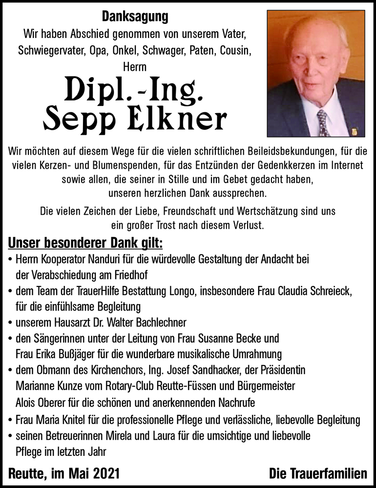 Zum Verlust von Eurerm lieben Sepp möchten wir Euch unser aufrichtiges Beileid und tiefes Mitgefühl aussprechen.