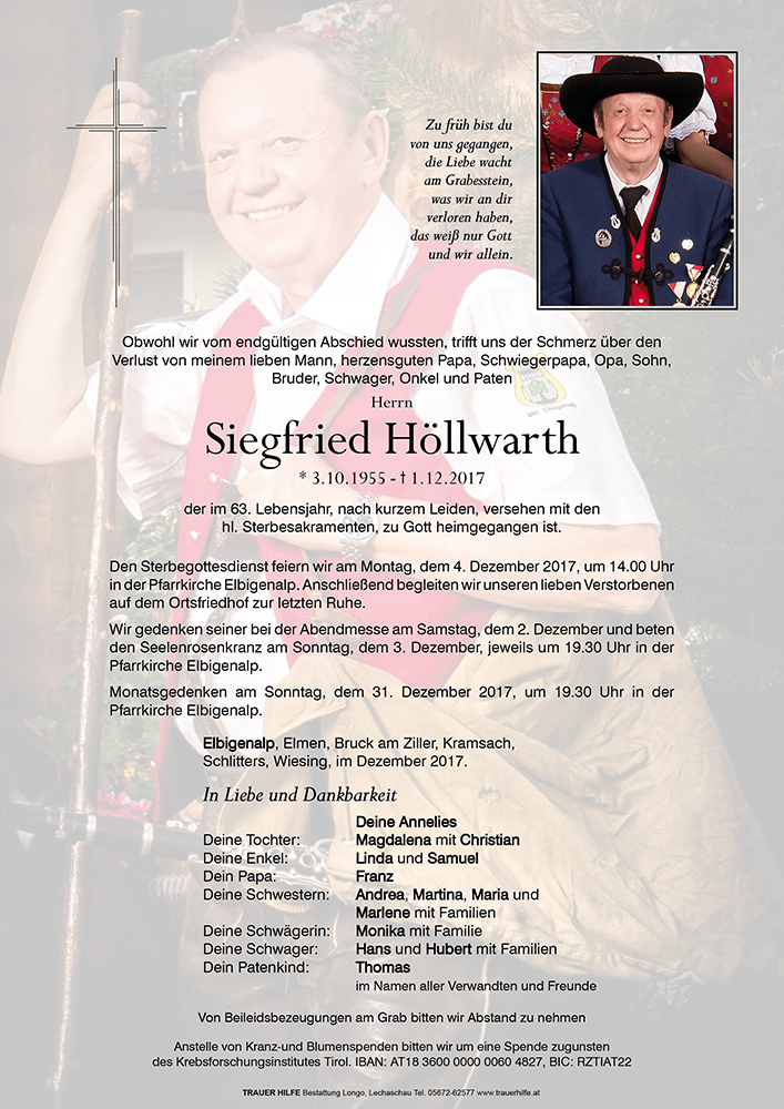 Kondolenzbuch für Siegfried Höllwarth