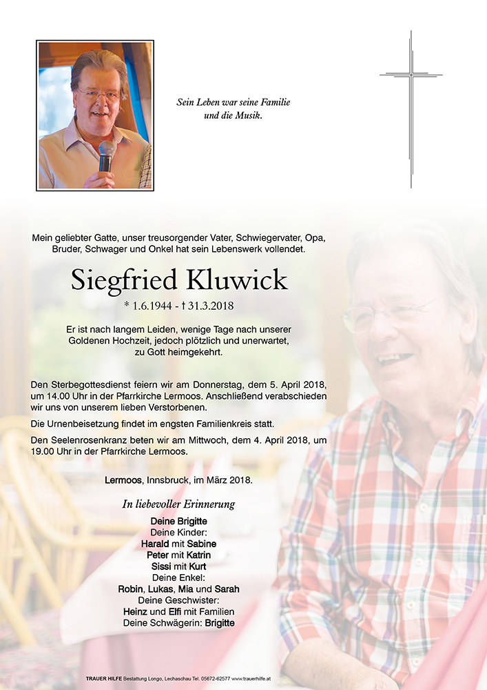 Kondolenzbuch für Siegfried Kluwick