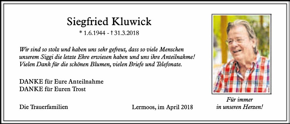 Mein Herzliches Beileid wünsche ich der ganzen Familie Kluwick und deren Angehörigen von Herzen.