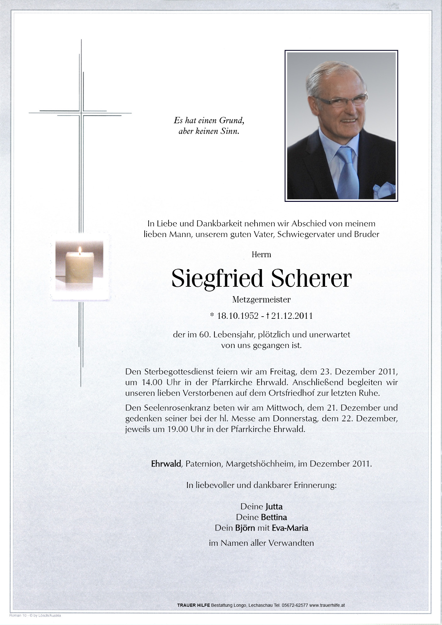 Gedenkkerzen für Siegfried Scherer