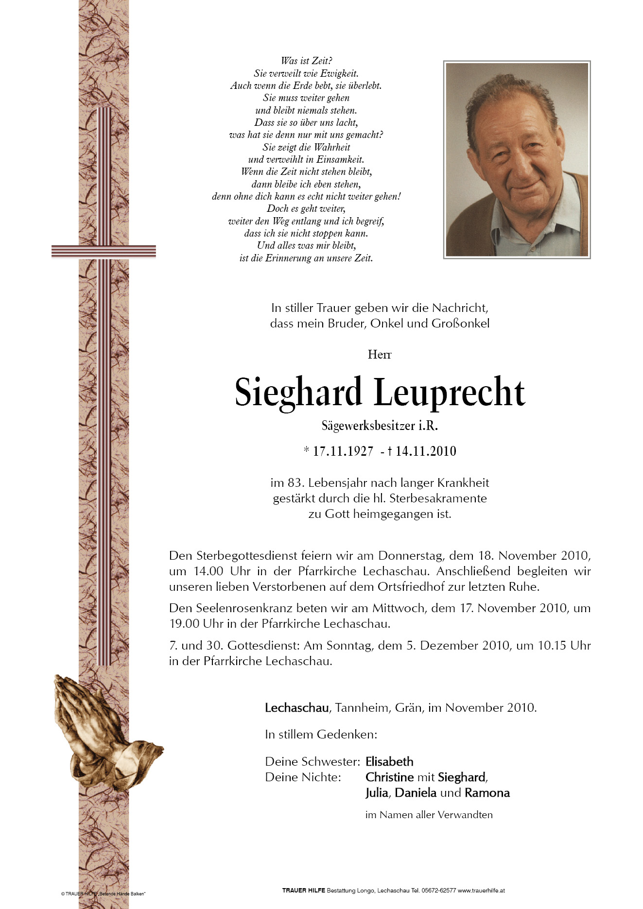 13.12.1901 14.11.2010 Lechaschau Sieghard Leuprecht Action Parte Sterbebild Gedenkkerzen Kondolenzen Parte Sterbebild Gedenkkerzen Kondolenzen Parte herunterladen Sterbebild herunterladen Gedenkkerzen für Sieghard Leuprecht 0 Einträge Kerze anzünden Ihre Gedenkkerze fürSieghard Leuprecht Ihr Name* Farbe auswählen Ihre Nachricht oder Name* E-Mail-Adresse* Mit dem Klicken auf "Kerze anzünden" erklären Sie sich mit unseren Datenschutzbestimmungen einverstanden. Kondolenzbuch für Sieghard Leuprecht 0 Einträge Kondolenz verfassen Ihr Abschiedsgruß an Sieghard Leuprecht Ihr Name* E-Mail-Adresse* Ihre Nachricht* Mit dem Klicken auf "Gruß absenden" erklären Sie sich mit unseren Datenschutzbestimmungen einverstanden.