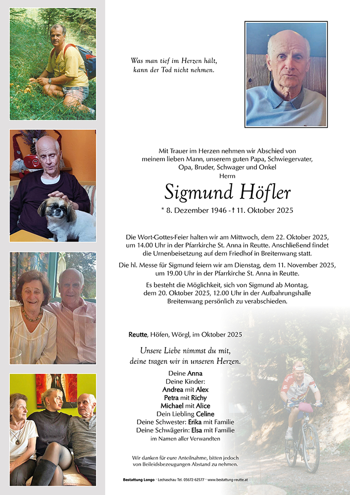 Lieber Sigi, einmal eingetreten in unser Leben, wirst du immer einen Platz darin haben.