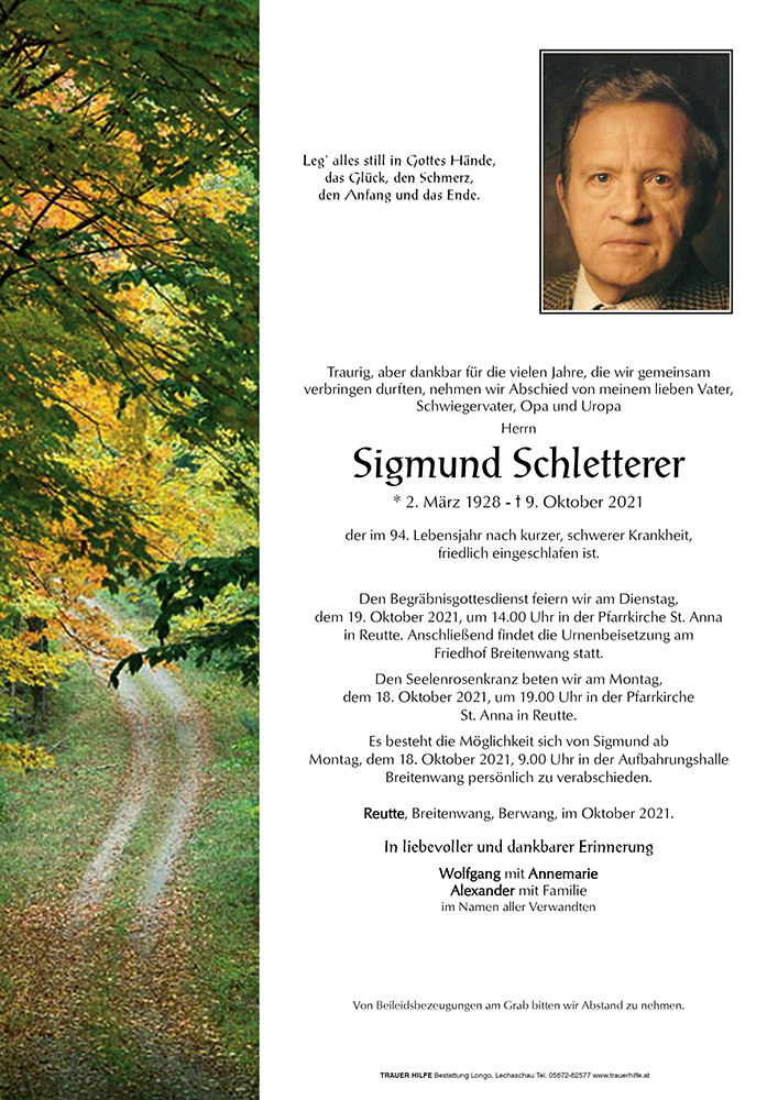 Fam. Bernhard Wex Ruhe in Frieden Siegmund