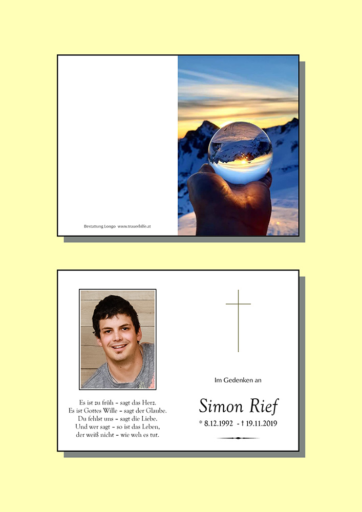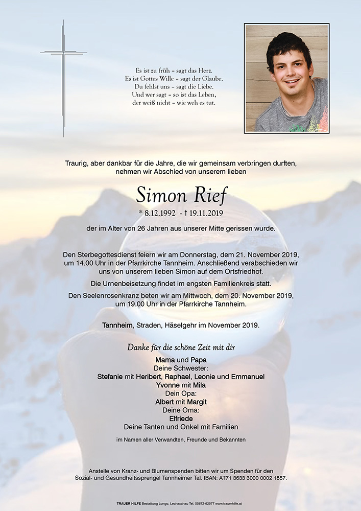 "Zurück bleiben Herzen, welche dich, Simon, für immer in sich tragen und niemals vergessen werden."