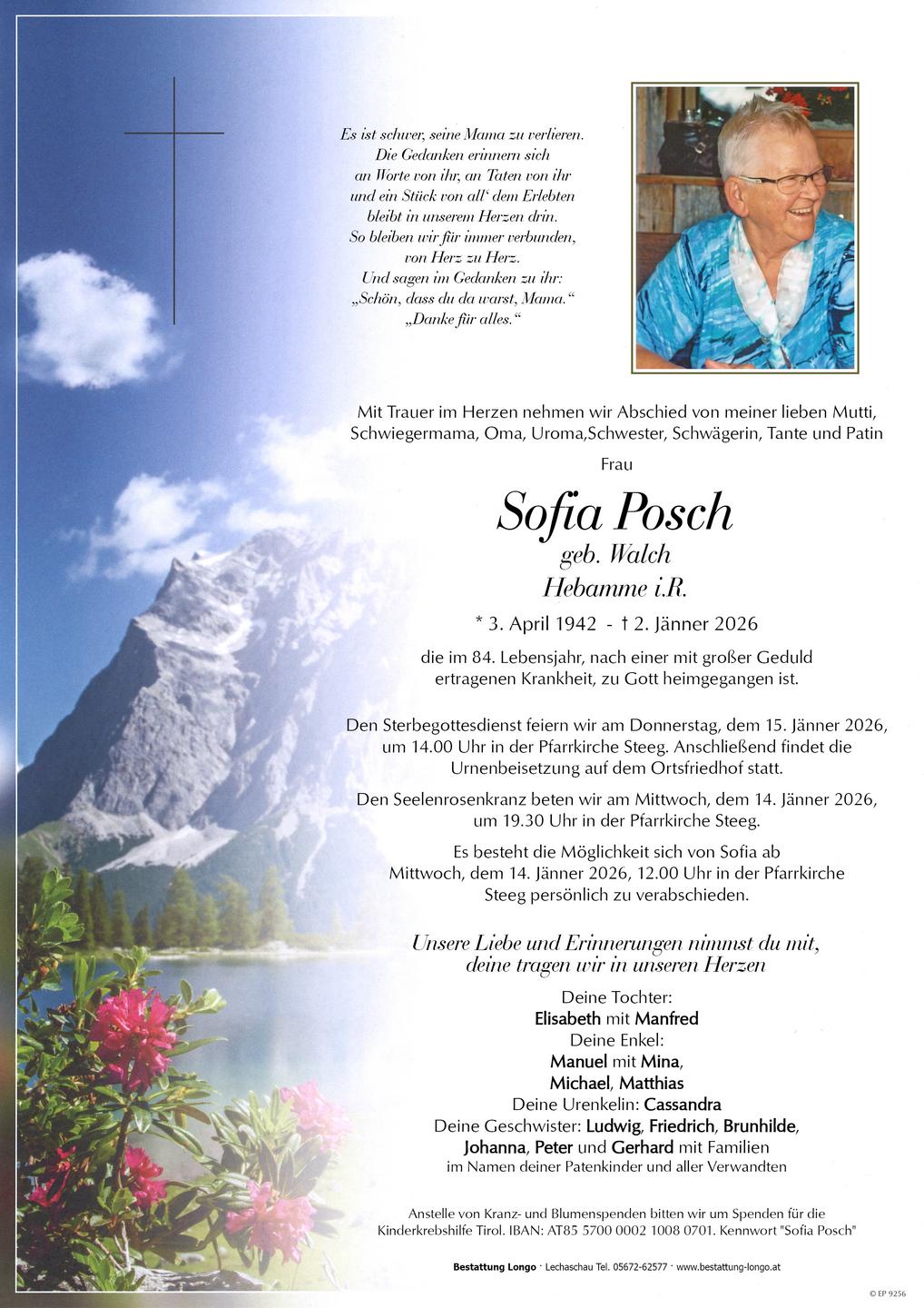 Kondolenzbuch für Sofia Posch