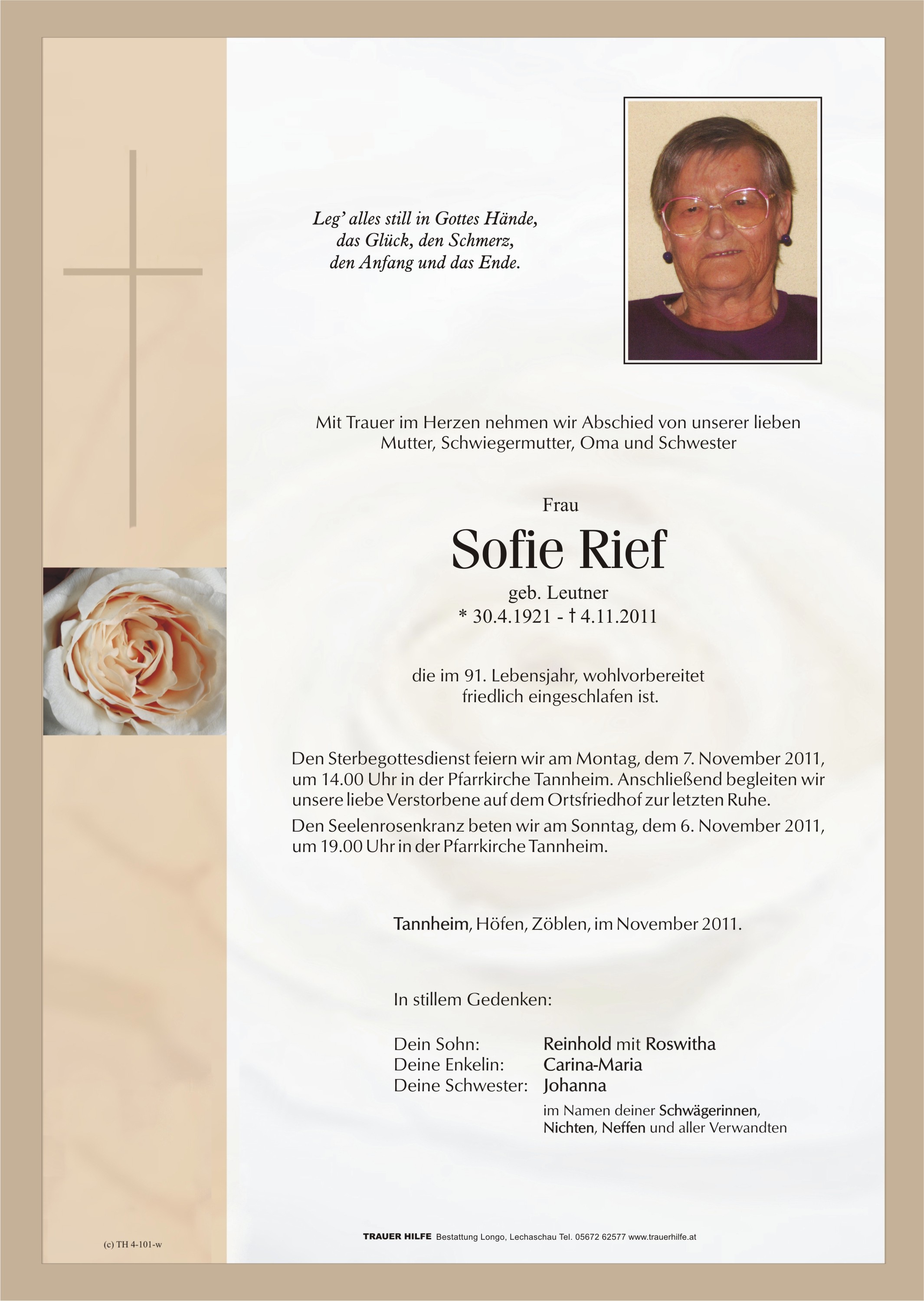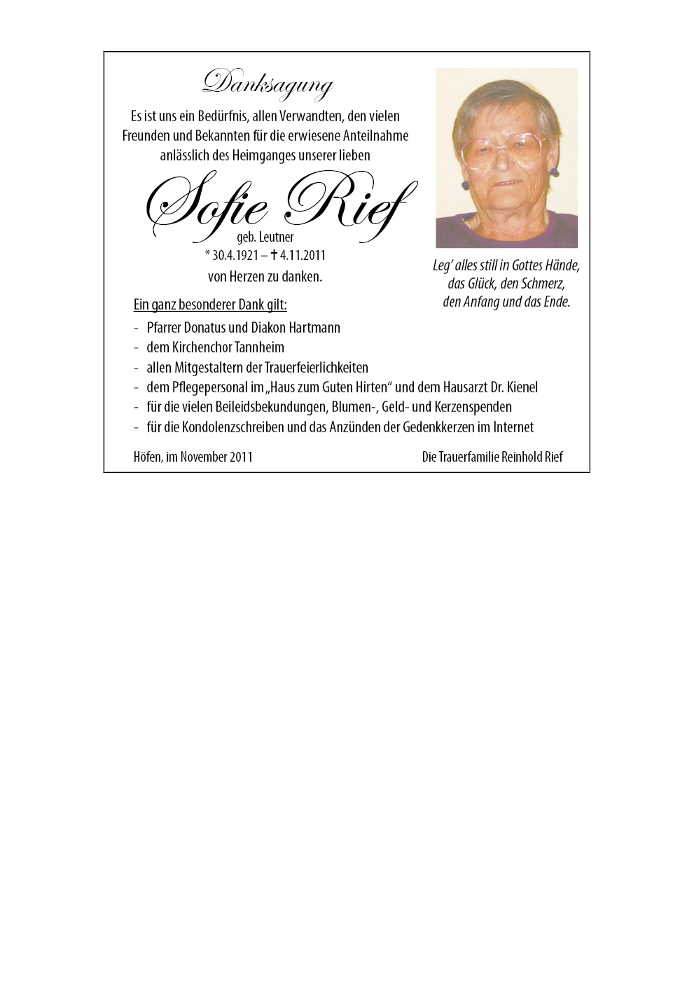 Kondolenzbuch für Sofie Rief