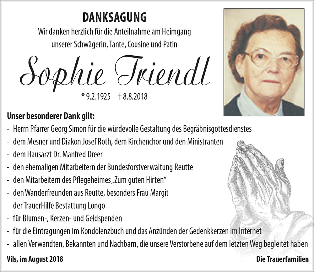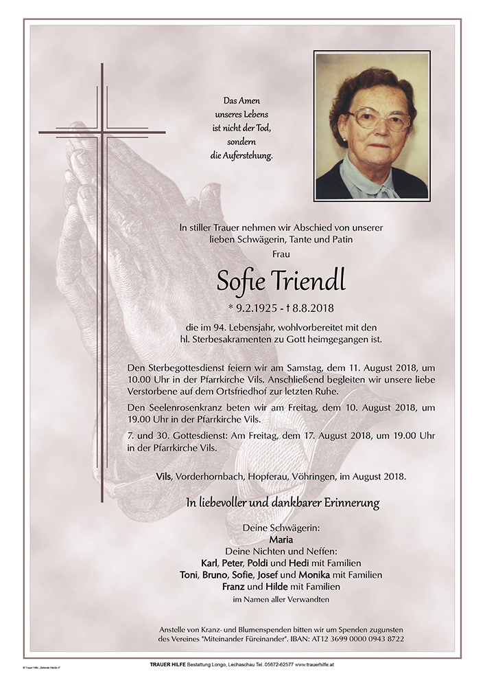 Kondolenzbuch für Sofie Triendl