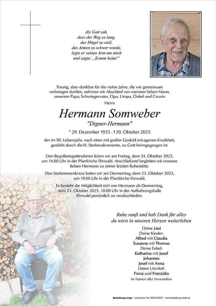 Liebe Trauerfamilie, wir werden Hermann in lieber Erinnerung behalten. In Gedanken sind wir bei euch. Gerlinde und Hansi