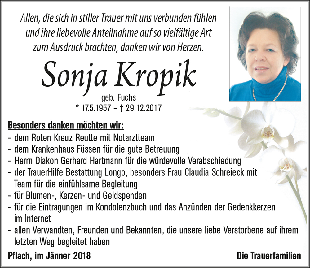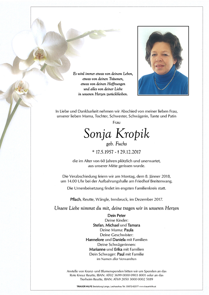 Kondolenzbuch für Sonja Kropik